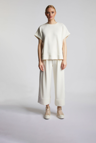 Эти брюки-кюлоты благодаря приятному мягкому материалу выглядят убедительно непринужденно. Эластичный пояс обеспечивает комфорт. Два боковых кармана и накладные карманы сзади подчеркивают свободный крой. Пришитая тесьма по краю красиво привлекает внимание.
