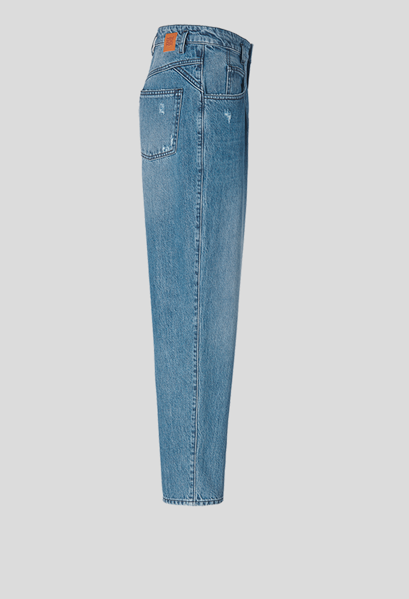 Широкие вверху, узкие внизу: морковные брюки возвращаются в моду. Эти джинсы из повседневного аутентичного денима, не содержащего эластана, прекрасно выглядят в стиле ретро.