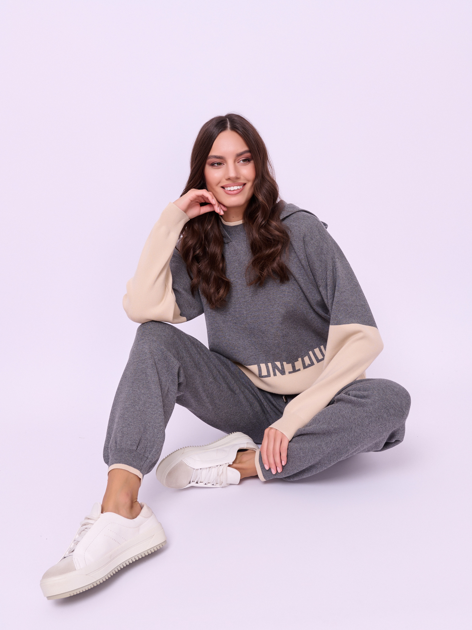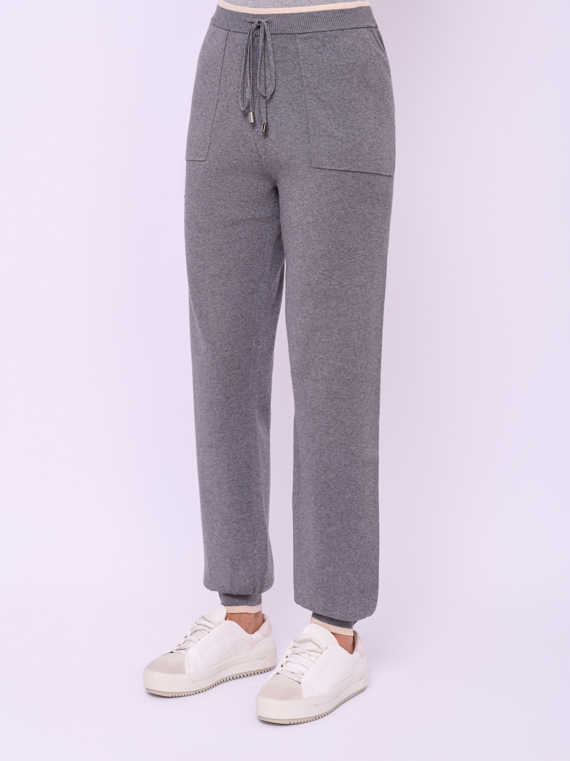 Детали: без застежки, пояс на резинке и кулиске, без рисунка, карманы косые, крой брючин зауженный, посадка средняя. Длина брючин: 80 см.