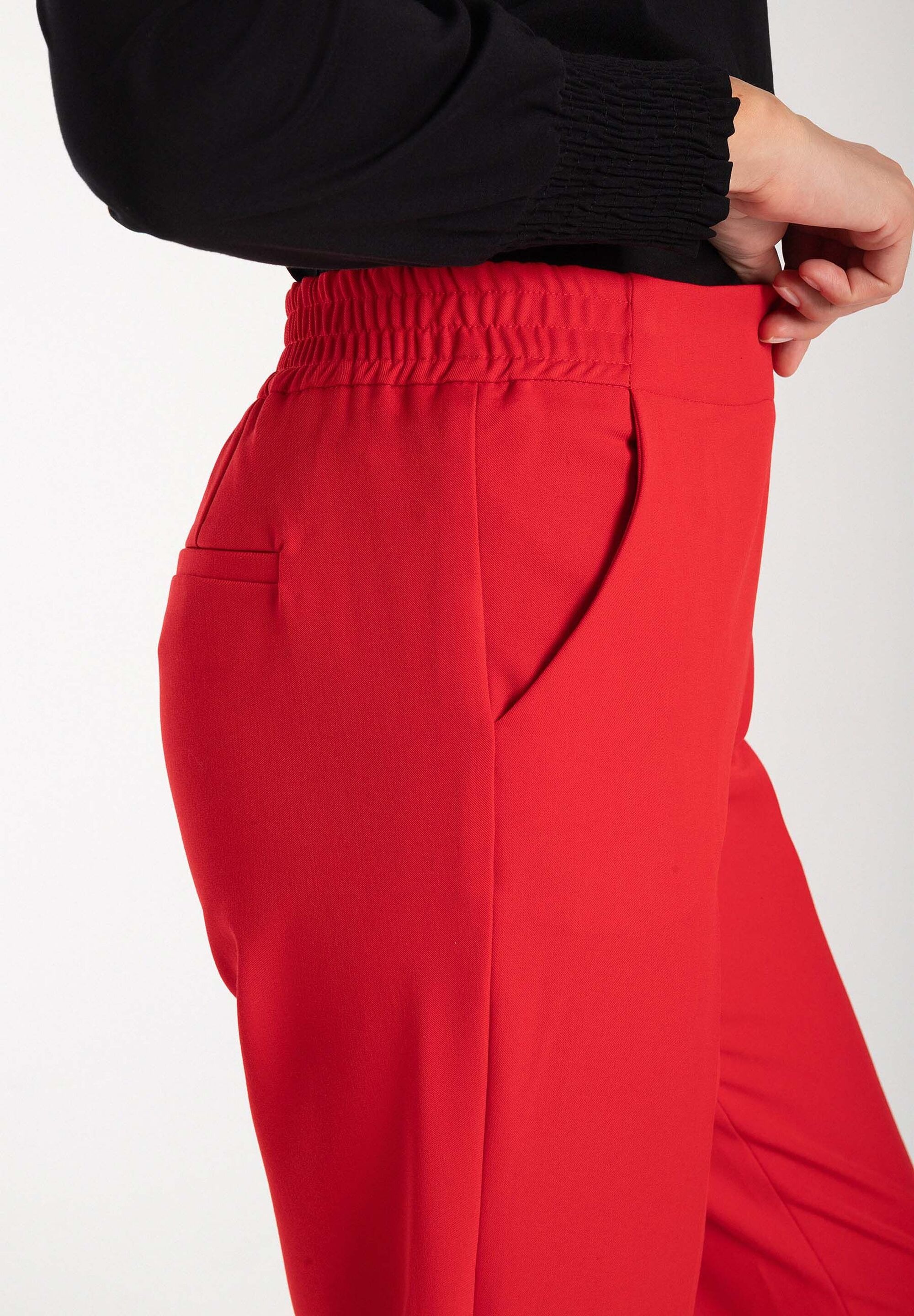 Аккуратные, несложные брюки без застежек от MORE & MORE с зажатыми складками легко сочетаются с блузками, рубашками или легким трикотажем, а в сочетании с блейзером в тон создают современный деловой образ. тонкий силуэт. Модель без застежек с эластичным поясом сзади, наклонные карманы, прессованная складка, Внутренняя длина штанины по размеру 42 = 74см