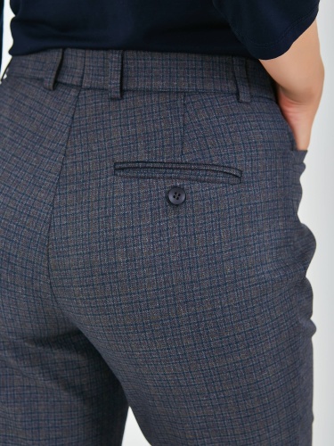 Чуть зауженные брюки прямого кроя, с принтом мелкой клетки.