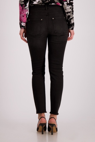 Джинсы приталенного кроя из эластичной смеси хлопка с максимальным комфортом. Боковины с тонированными заклепками. Бахрома на манжетах штанин. Тонкая посадка. Нормальная высота талии. 5-карманный стиль. Длина внутренней штанины для всех размеров составляет 74 см.