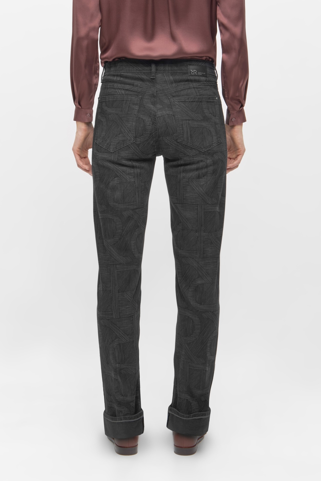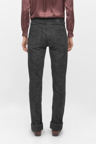 Джинсы со средней посадкой и пятью карманами и изысканным логотипом RR по всей поверхности. Свободная прямая модель. Длина по внутреннему шву: 74 см.