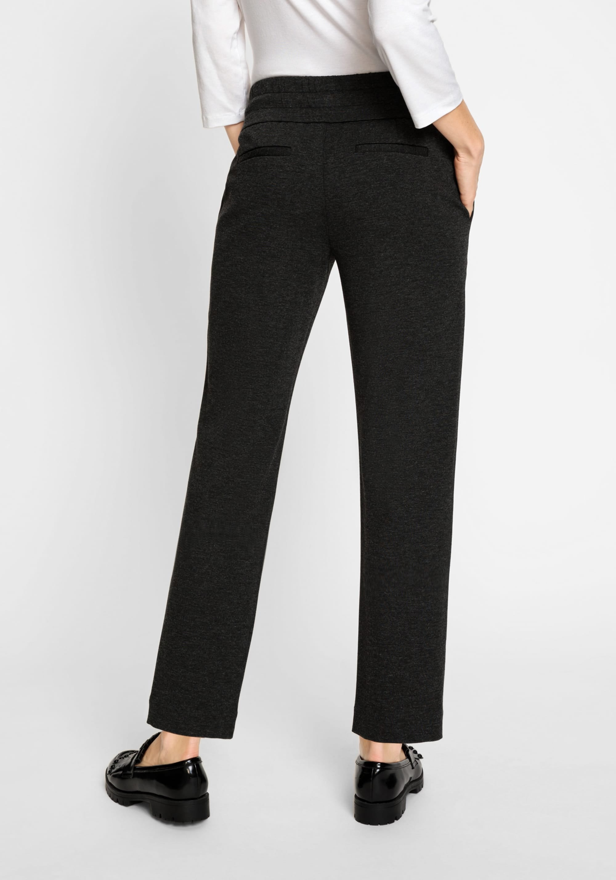 Удобные и эластичные брюки из джерси с эластичной кулиской на талии для удобства ношения. Модель имеет центральные передние швы на штанинах, боковые прорезные карманы и задние прорезные карманы. Посадка расслаблена в бедрах и сидит немного ниже естественной линии талии для комфорта.