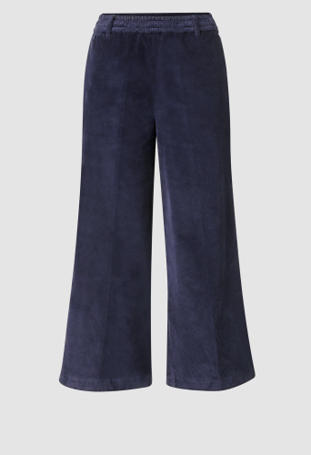Вельветовые брюки-кюлоты изготовлены из смеси мягкого материала с добавлением хлопка и стрейча. Эластичный пояс подчеркивает комфорт при ношении. Длина для размера 42: 60 см.