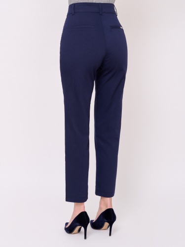 Застежка молния, рисунок полоска, карманы косые, крой брючин прямой, посадка средняя, боковые разрезы. Длина брючин: 70 см.