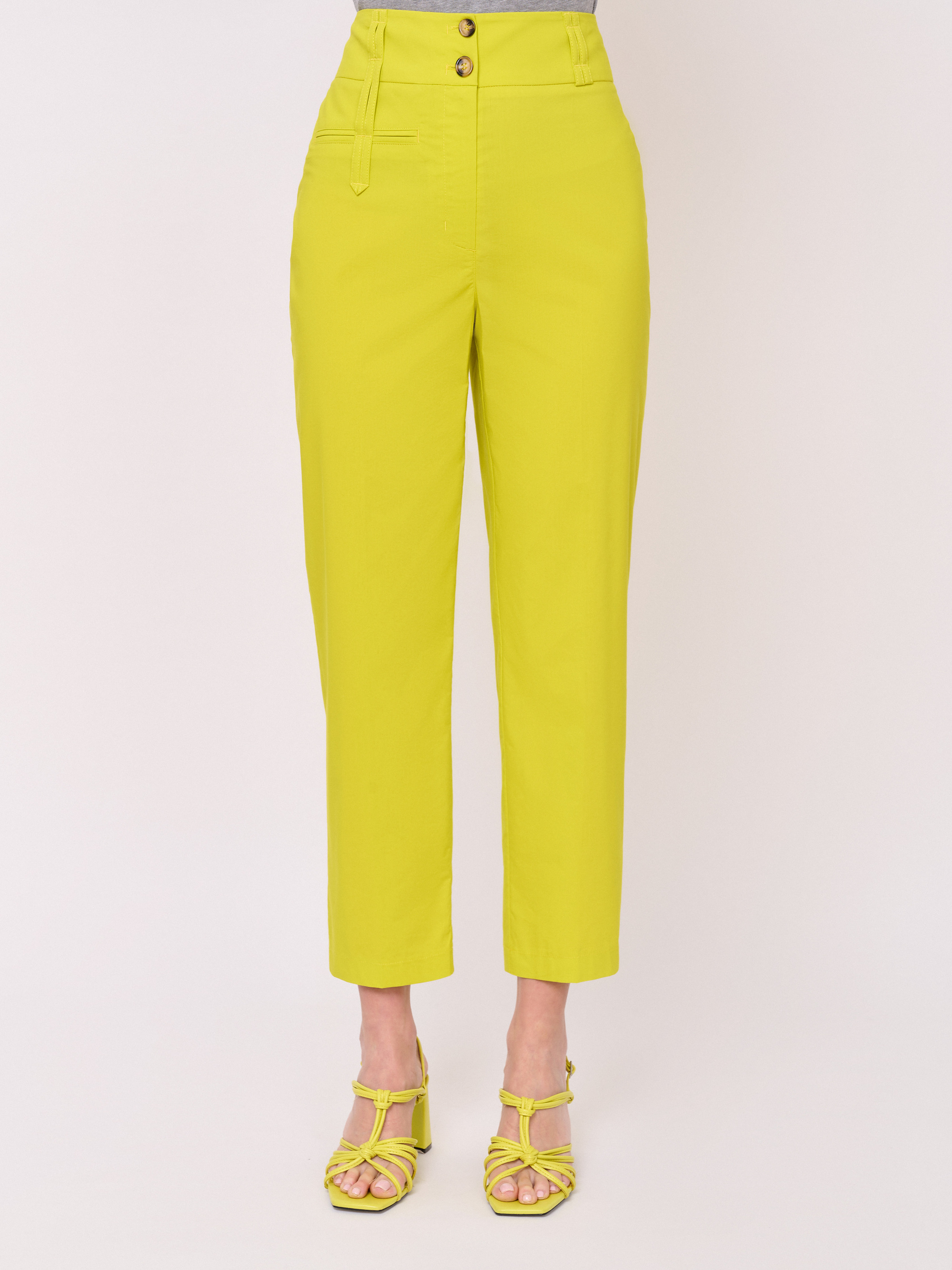 Застежка молния, без рисунка, без карманов, крой брючин слегка зауженный, посадка средняя, шлевки для ремня, высокий пояс. Длина брючин: 69 см.