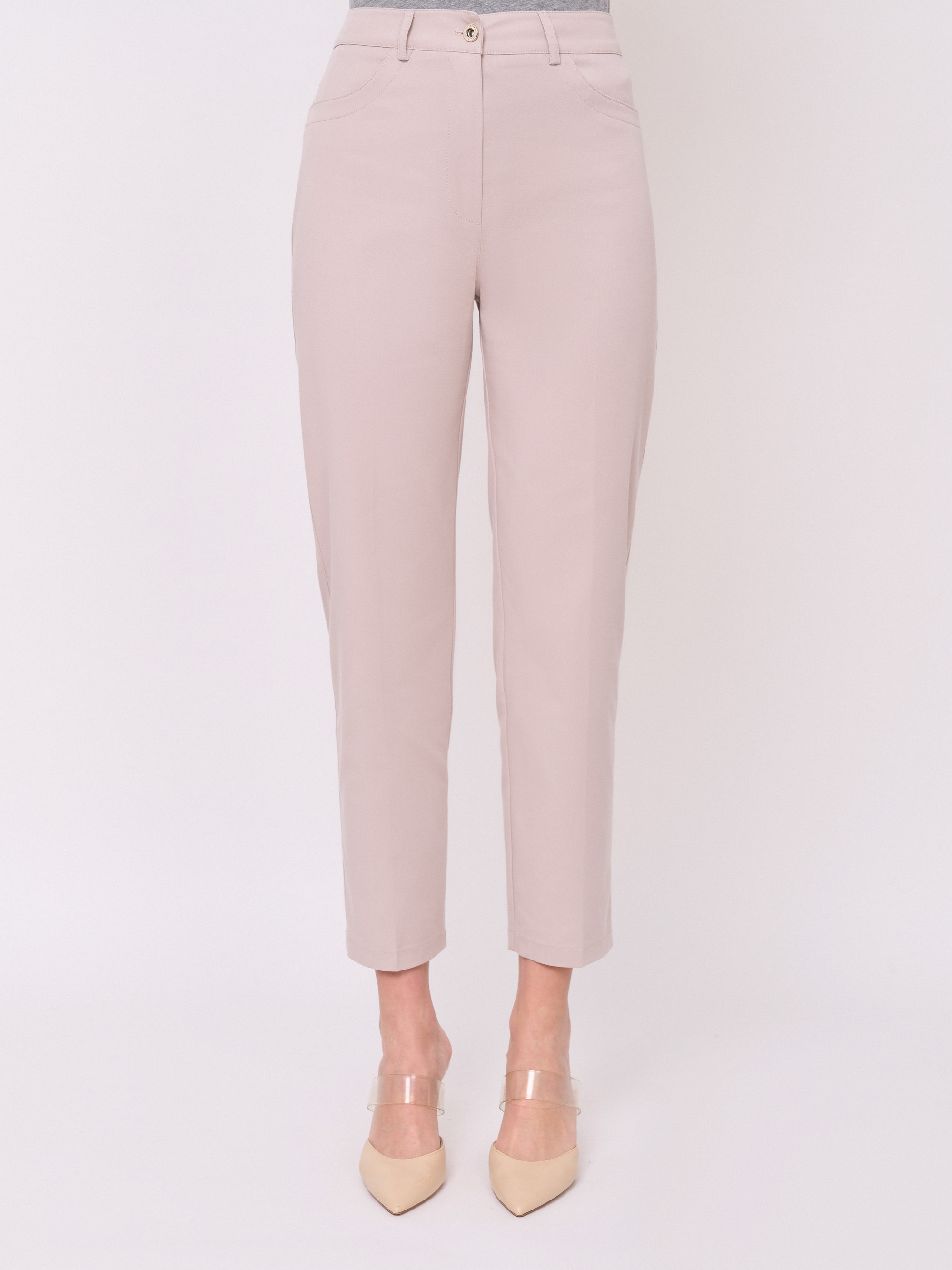 Застежка молния, без рисунка, карманы с отрезным бочком, крой брючин зауженный, посадка средняя. Длина брючин: 68 см