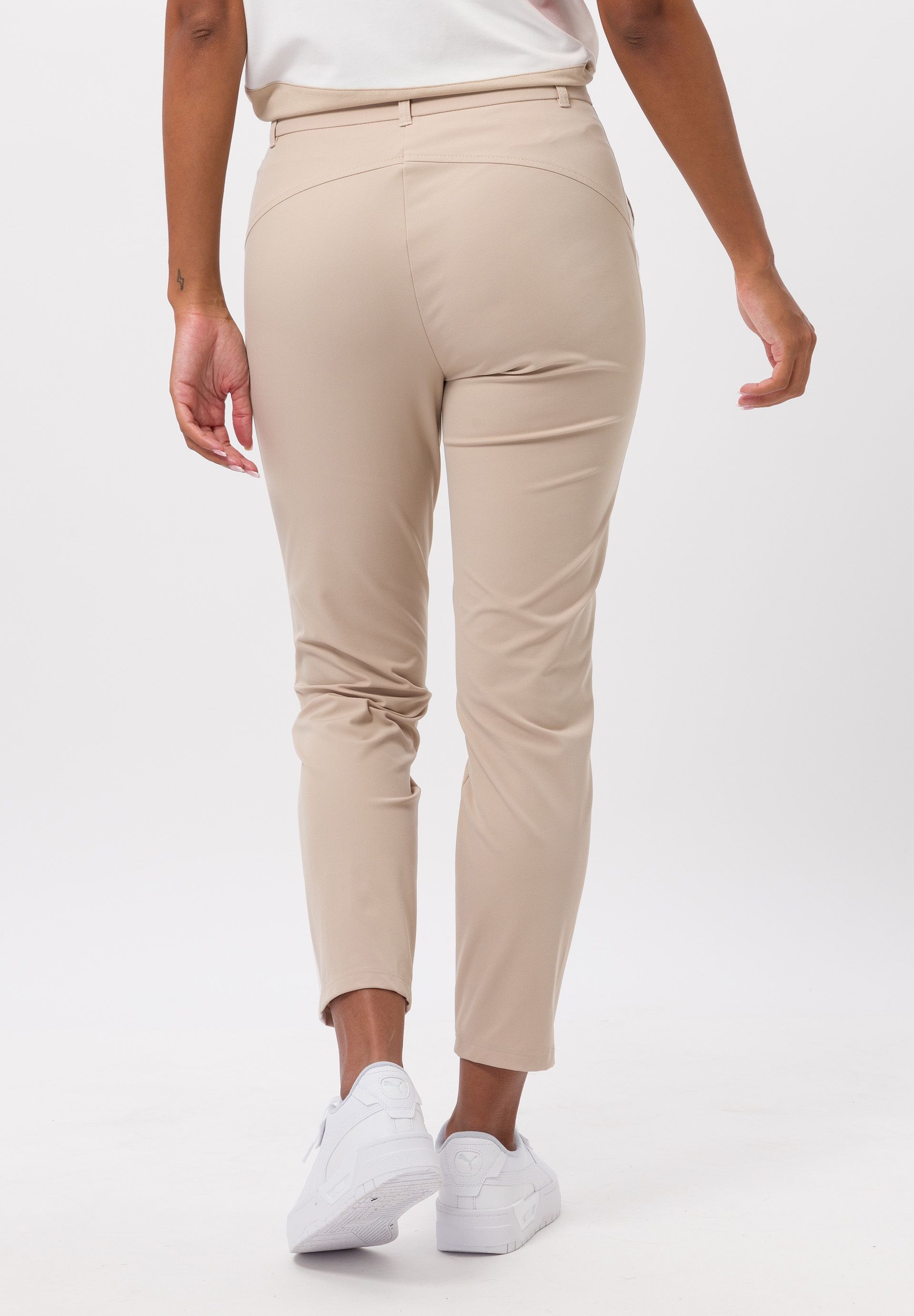 Брюки женские с контрастными полосками по бокам. Облегающий крой подчеркивает фигуру в сочетании с эластичной способностью сохранять форму. Это означает, что брюки очень удобно сидят на ноге в течение всего дня, сохраняя при этом свою форму. Потайная застежка на поясе с петлей для ремня обеспечивает чистоту спереди.