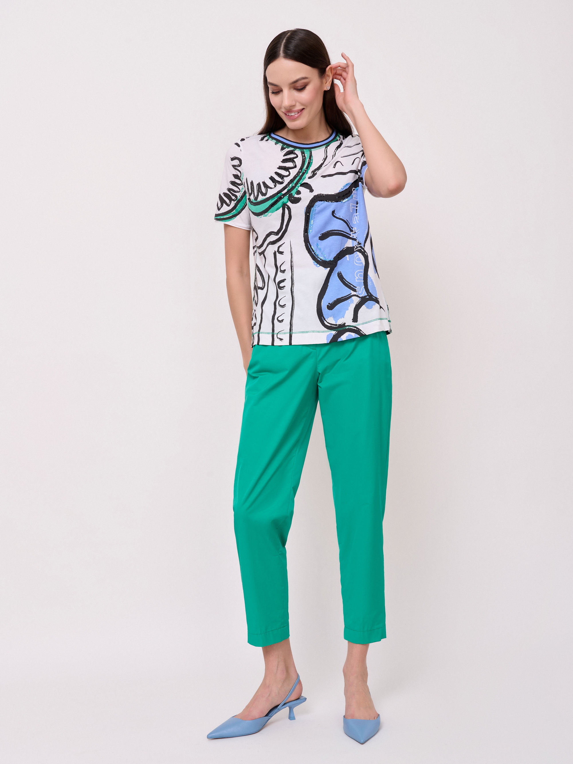 Детали: застежка молния, без рисунка, карманы в шве на молнии, крой брючин зауженный, посадка средняя. Длина брючин: 67 см.