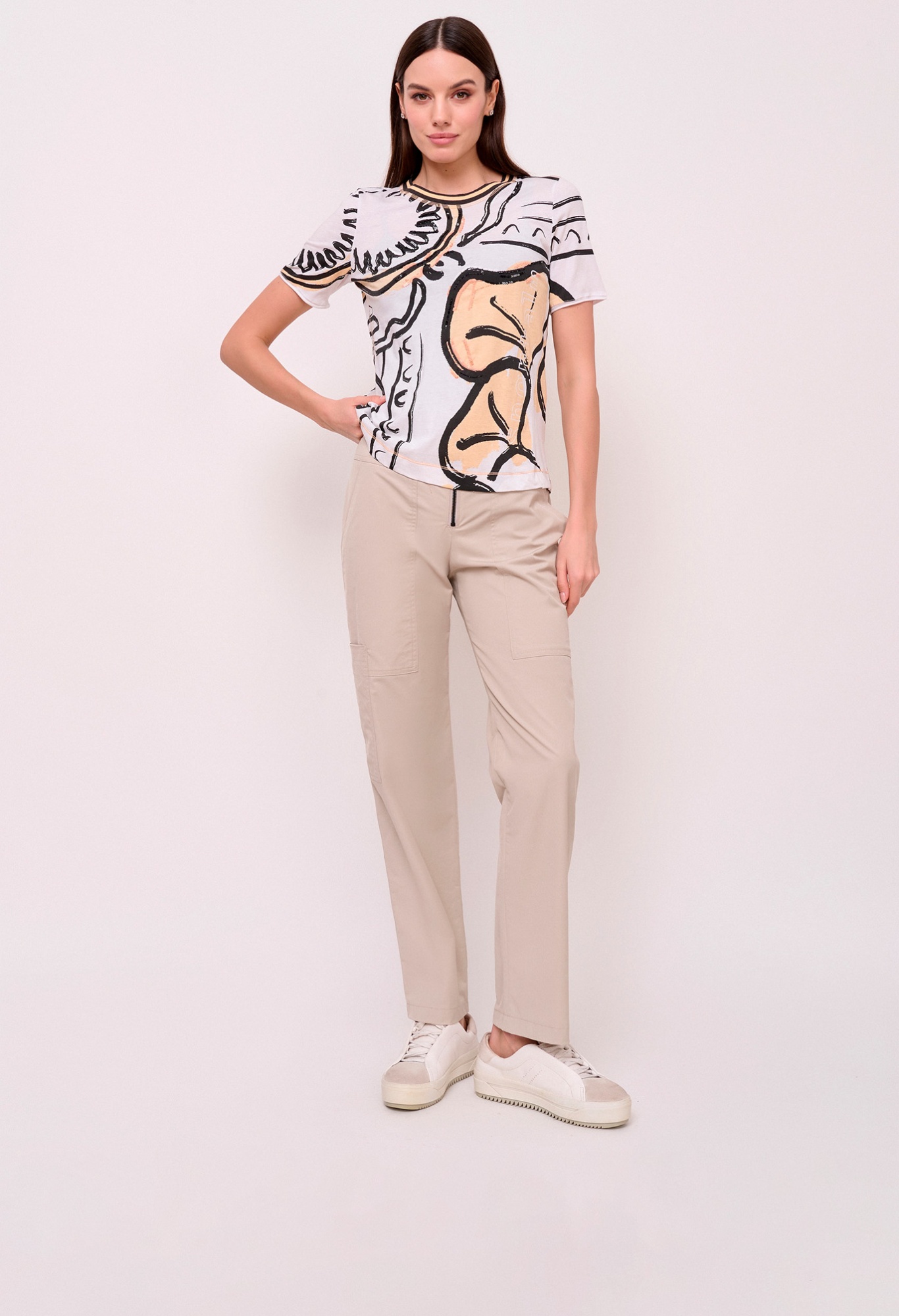 Детали: застежка молния, без рисунка, карманы косые, крой брючин прямой, посадка средняя. Длина брючин: 77 см