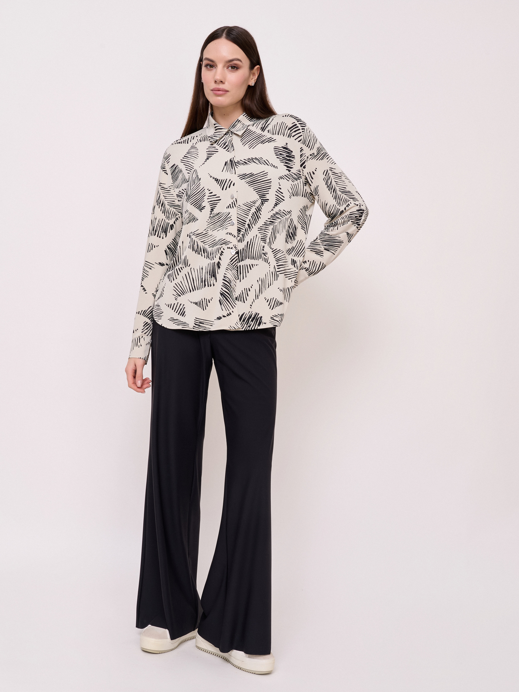 Детали: без застежки, пояс на резинке, без рисунка, карманы в шве, крой брючин широкий, посадка средняя. Длина брючин: 91 см.