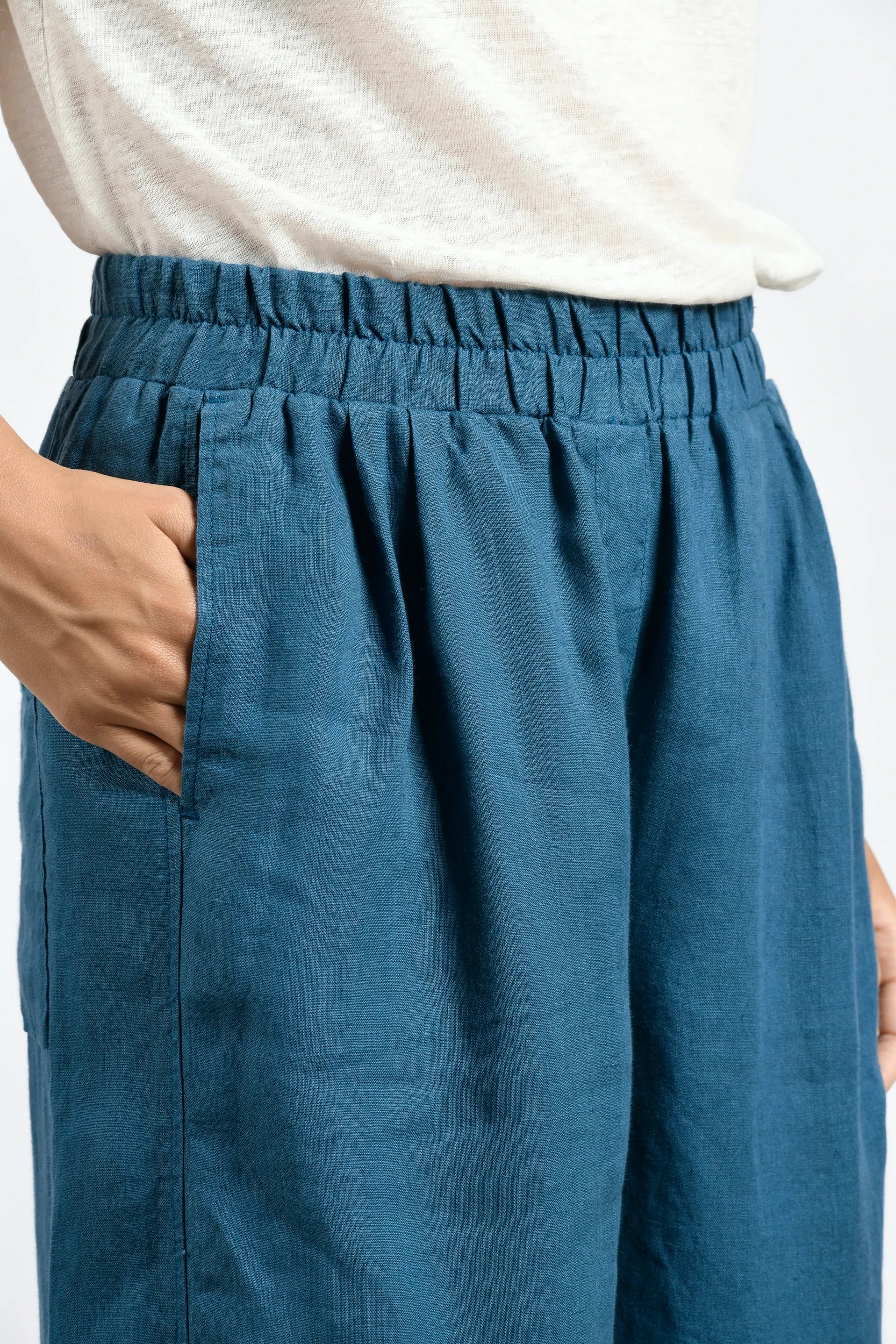 На сайте указаны Российские размеры. Льняные брюки широкого кроя с эластичным поясом.2 передних итальянских кармана. 2 накладных кармана с клапаном на пуговице сзади.
