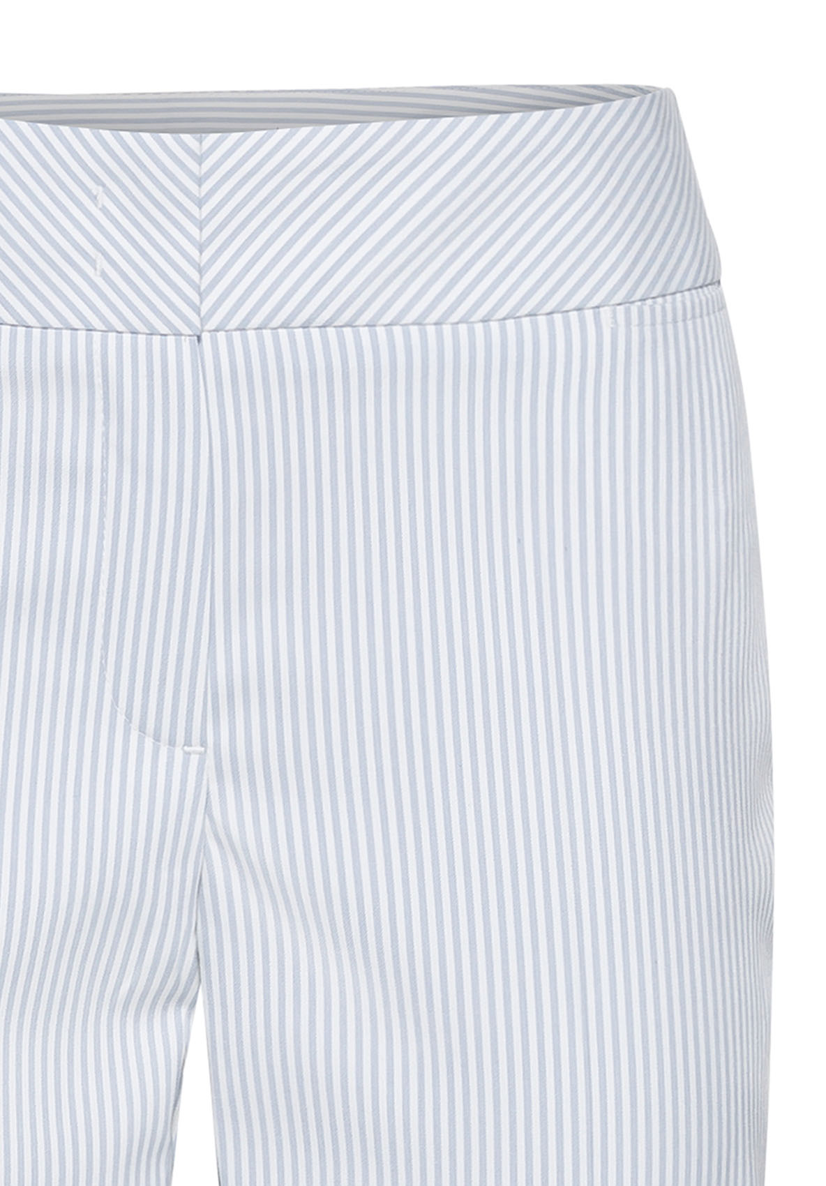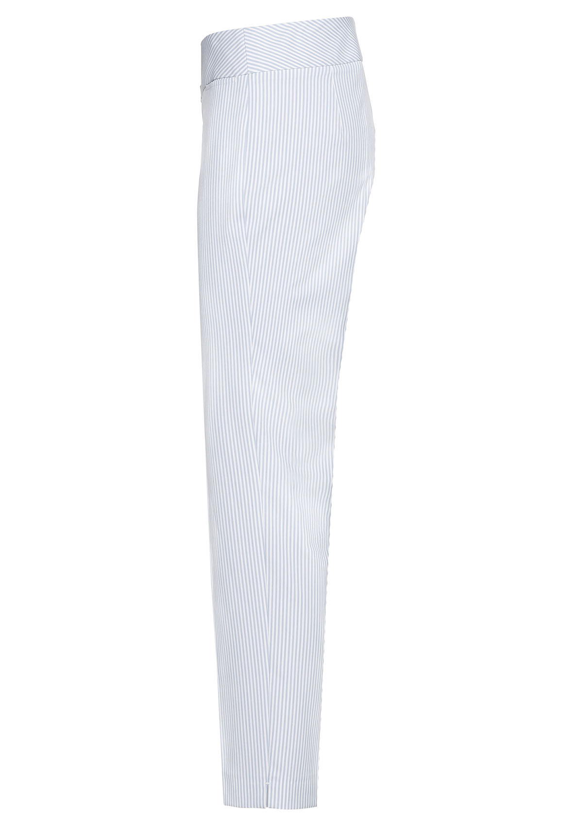 Эластичные брюки Siena с трендовым принтом в полоску. Брюки отлично подходят для стильного образа. Эластичный материал очень удобен в ношении. Данная модель имеет силуэт slim, среднюю посадку, длину 7/8, высокий пояс со скрытой застежкой и небольшой карман под поясом. Брюки станут идеальной модной парой как для делового, так и для повседневного образа. • брюки с принтом в полоску • высококачественная смесь вискозы и эластана • застежка-молния, небольшие разрезы по бокам • средняя посадка, силуэт slim • укороченные брюки 7/8, длина около 68 см