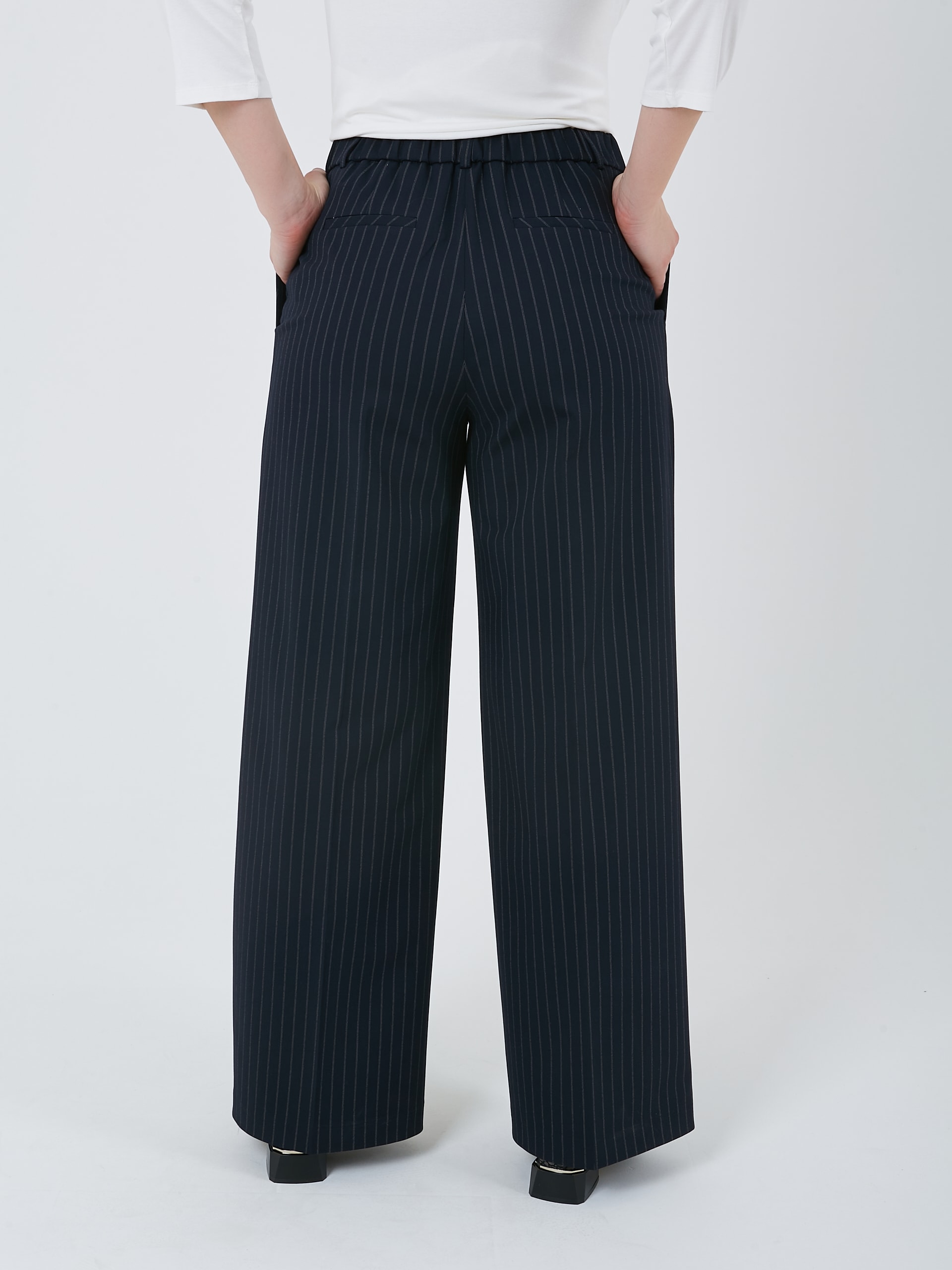 Прямые брюки тёмно-синиего цвета с пунктирной полоской "Страйп". Осень-Зима'25/26. Капсула "Лиловый шар"