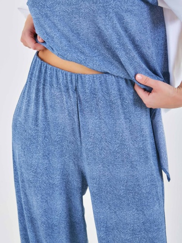 Брюки выполнены из мягкого материала и имеют свободный крой, что обеспечивает комфорт при носке. Они представлены в синих тонах и могут легко сочетаться с различной верхней одеждой, создавая стильный и расслабленный образ. Коллекция Весна-Лето 2025. Капсула "Сен-Тропе". Параметры модели: 89-70-92, рост 167, размер 44-46