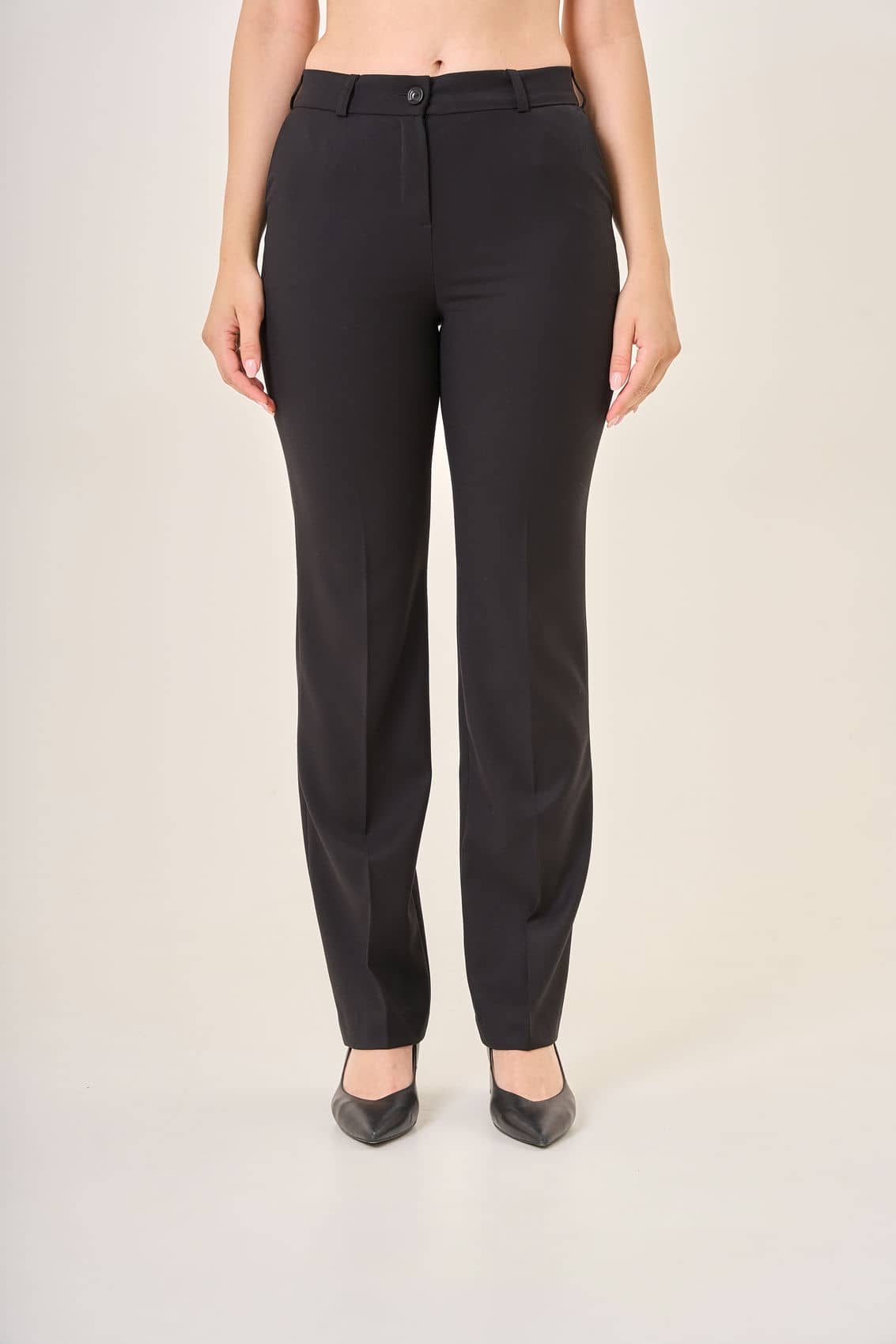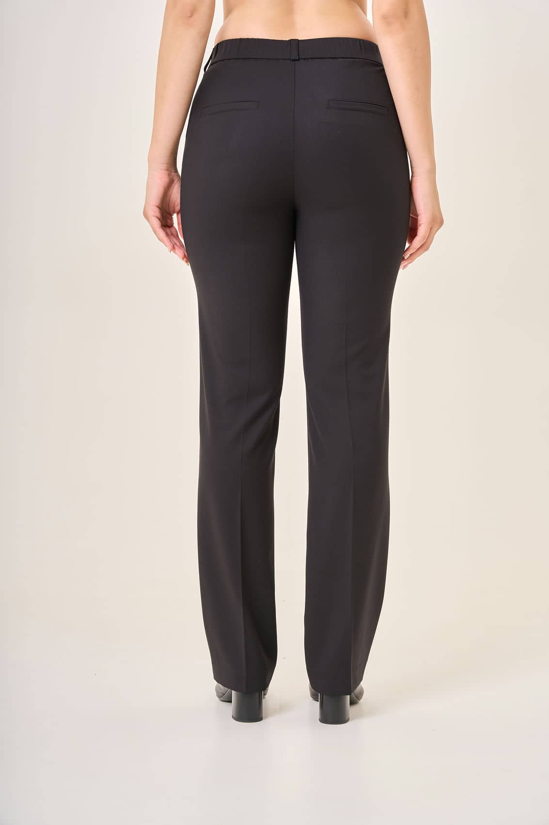Женские классические брюки прямого кроя. Комфортная посадка на талии и элегантный крой идеально подходят для офисного и повседневного гардероба. Сзади расположены два аккуратных накладных кармана, подчёркивающие классическую стилистику изделия. Плотная ткань сохраняет форму и выглядит презентабельно на любой фигуре. Осень-Зима'25/26