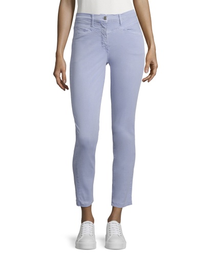 Однотонные брюки - универсальная модель! Брюки средней посадки, силуэт slim подчеркивает стройные ноги. Оригинальный крой с кокеткой. Приятный к телу материал из хлопковой смеси. Необычный цвет брюк освежит образ и станет стильной изюминкой в сочетании с любым вариантом верха и обуви.