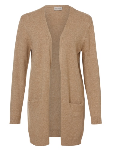 Базовый кардиган бежевого оттенка. Нежный материал изделия приятен к телу. Оверсайз силуэт, накладные карманы, длинные рукава с манжетами-резинками.