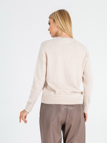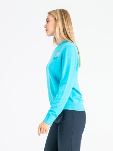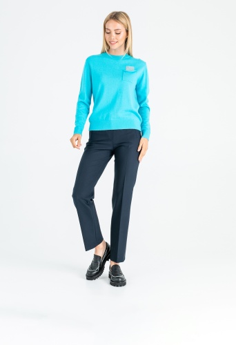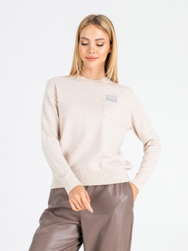 На сайте указаны Российские размеры. Ткань: смесовая ткань средней плотности. В составе: 27% вискоза, 27% нейлон, 23% ангора, 23% шерсть. Крой: джемпер слегка приталенного силуэта с круглым вырезом и длинным рукавом. Комфортный материал, где за мягкость отвечает вискоза, а за тепло – ангора и шерсть. Резинки на манжетах и конце изделия обеспечивают надежное прилегание, не открывают зону живота, что особенно актуально в холодное время года. Представлен в двух стильных оттенках – кремовом и нежно-голубом. Отделка: функциональный карман на груди украшен переливающимися стразами, которые выглядит уместно и добавляют образу праздничности. С коллекцией брюк и юбок для создания образа с джемпером можно познакомиться в соответствующих разделах нашего сайта. Рост модели - 177 см
