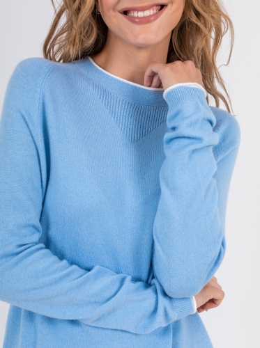 На сайте указаны российские размеры. Ткань: выполнен из смесовой ткани с добавлением шерсти (20%) и кашемира (5%) для непревзойденного тепла и уюта, а также вискозы (27%) и нейлона (48%) для эластичности, гладкости и сохранения свойств при стирке. Крой: джемпер средней длины прямого силуэта с круглым воротом. Базовая гладкая модель с длинным рукавом дарит тепло и уют, прекрасно садится на разные фигуры и гарантирует комфорт при движении. Отделка резинкой на манжетах и низе изделия обеспечивает прилегание к телу. Отделка: контрастная отделка рукавов и ворота делает образ современным и запоминающимся. Декоративные фактурные фрагменты в зоне ворота и по бокам смотрятся уместно и изысканно. Подберите идеальный низ в разделах юбок и брюк на сайте Stern.
