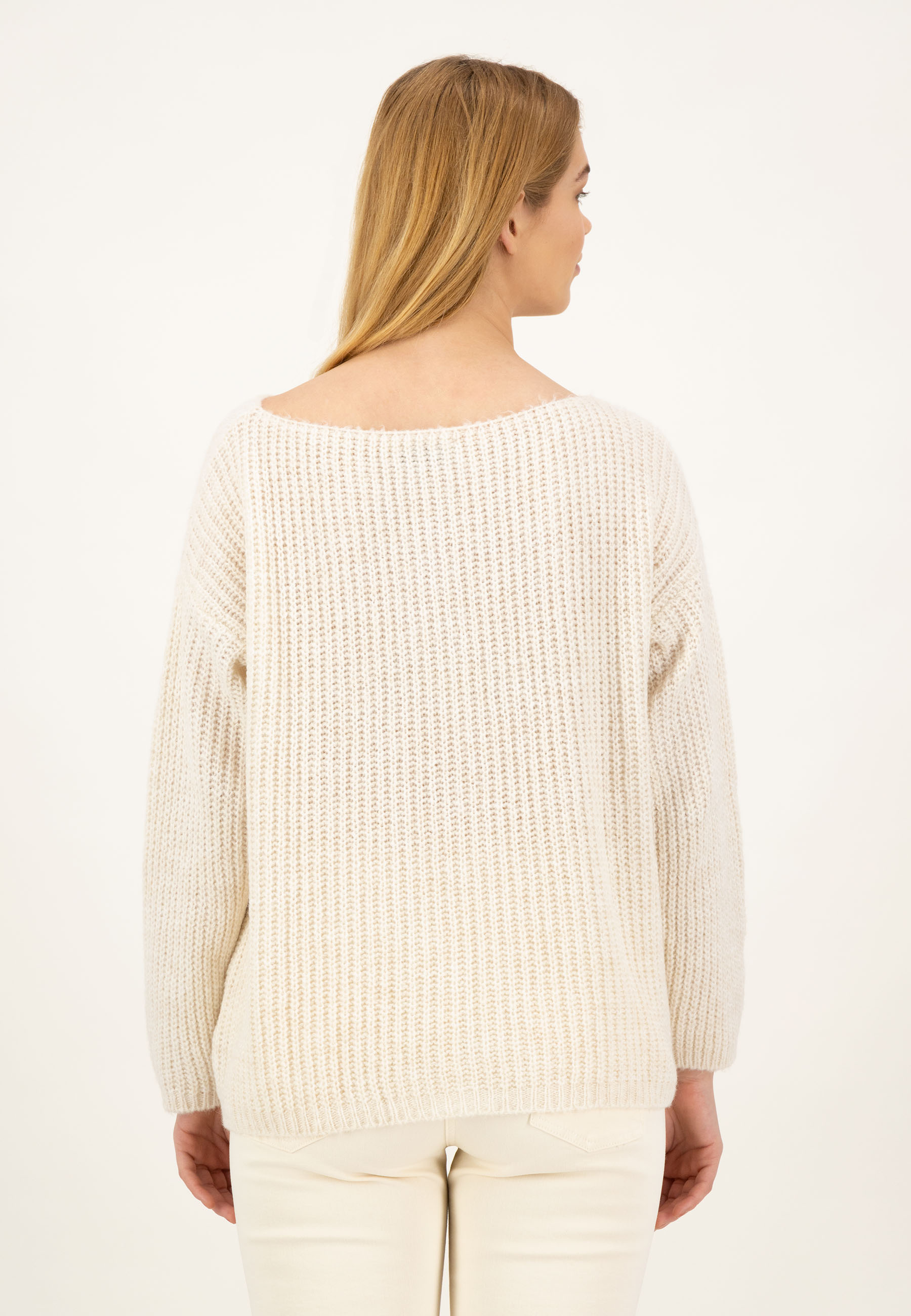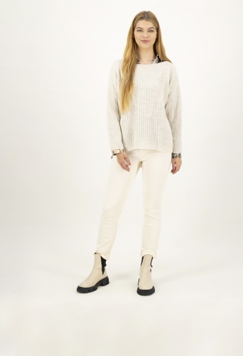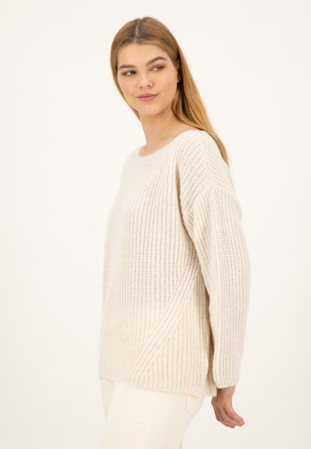 На сайте указаны российские размеры. Повседневный вязаный свитер свободного покроя. Сочетание высококачественных материалов делает свитер приятным и мягким в носке. Благодаря тонкой и асимметричной структуре вязания свитер с круглым вырезом станет повседневным деталью для непринужденного образа. Рост модели: 177 см. Измерения для 46 размера : Окружность груди: 62 см Бедра: 58 см Длина по спинке: 58 см. Длина рукава: 60 см.