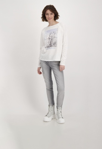 На сайте указаны российские размеры. Легкая рубашка с длинными рукавами и принтом из 100% хлопка. Прямой фасон состоит из круглого выреза горловины с рукавами реглан. Стильный образ с эффектом пряжи и фотопечатью с объемными надписями, сверкающими стразами и деталями с лаковым принтом спереди. 100% хлопок также обещает приятный и качественный комфорт при ношении. Произведите неизгладимое впечатление с вашим новым модным фаворитом. Модель ростом 178 см Длина платья 62 см