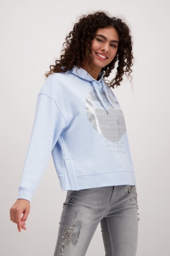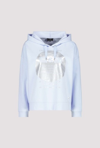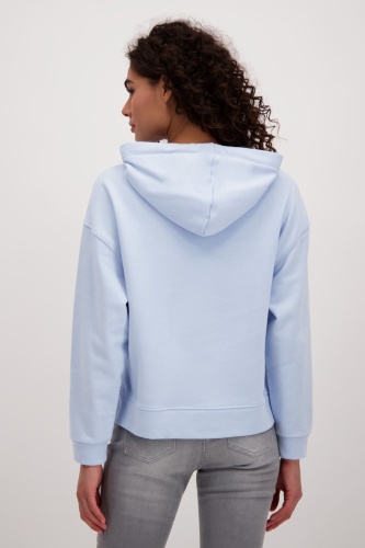 На сайте указаны российские размеры. Толстовка с длинными рукавами от monari позволяет легко создавать новые стили. Длинные рукава и подол заканчиваются широкими манжетами, а длинные боковые разрезы оснащены панелями. Форма: прямой крой, крутой капюшон с кулиской, люверсами и лентой для завязывания, широкие плечи. Передняя часть становится изюминкой благодаря большой блестящей лакированной буквенной эмблеме. Благодаря высококачественному хлопковому смесовому материалу толстовка проста в уходе и приятна на ощупь. Модель ростом 178 см. Длина спины 44 размера 60 см.