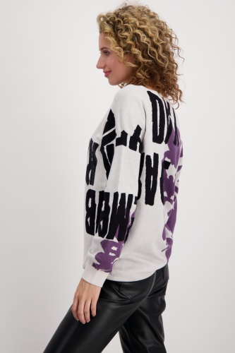 На сайте указаны российские размеры. Хлопковый вязаный свитер с круглым вырезом и стразами. Большой жаккард с цветочным узором и надписью прекрасно сочетается со сверкающими деталями из страз в буквах. Широкие манжеты на рукавах и по низу завершают дизайн. Прямой фасон отличается круглым вырезом горловины, слегка приспущенной линией плеч и боковым швом спереди. Спереди нашивка с вышивкой и сверкающими стразами. Абсолютное зрелище. Идеально сочетается с кожаными брюками и высокими ботильонами. Рост модели 176 см. Длина по спинке 44 размера составляет 73 см, а по переду – 70 см.