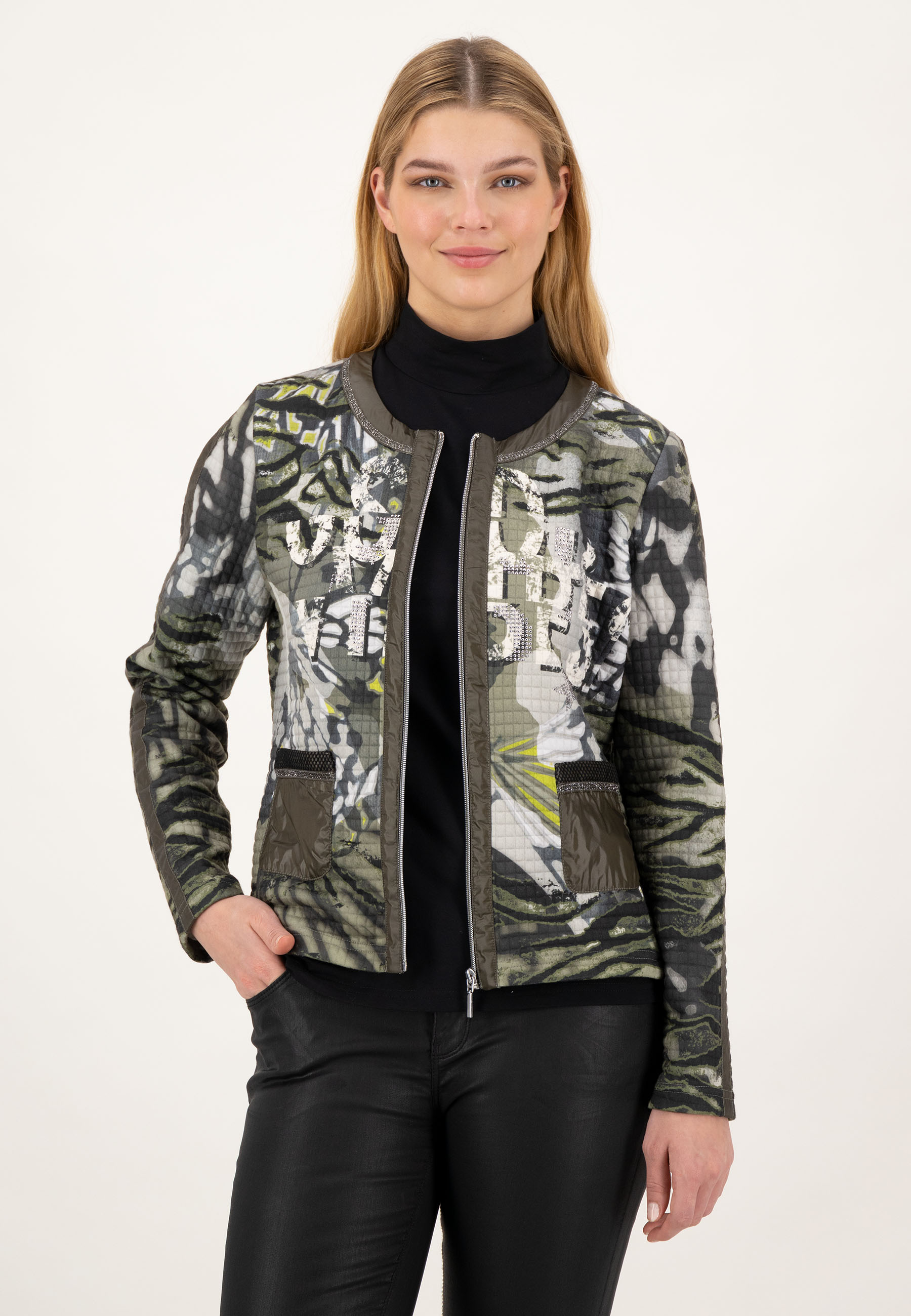 На сайте указаны российские размеры. Яркая стеганая куртка с изысканными деталями из страз и накладными карманами. Спереди искусно сочетаются красивые узоры, которые придают стеганому блузону изысканный и ценный вид. Полоски из нейлона современного качества подчеркивают спортивный характер, а накладные карманы с сетчатой вставкой и люрексовая полоса делают куртку универсальной. Швы создают женственный и подчеркивающий фигуру вид. Наша модель ростом 177 см. Измерения для размера 44: Окружность груди: 99 см Талия: 89 см Бедра: 102 см Длина по спинке: 58 см. Длина рукава: 62 см.