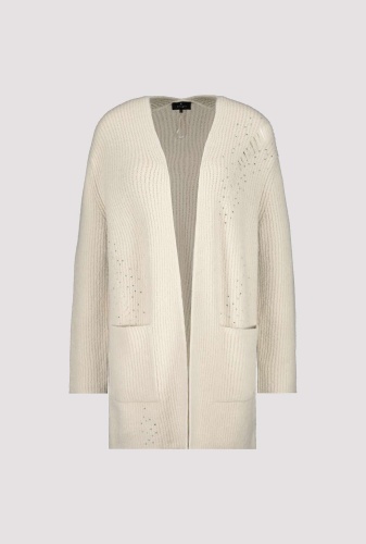 На сайте указаны российские размеры. Открытый кардиган оверсайз с карманами и стразами. Однотонный кардиган от monari искусно приправлен рваными секциями со сверкающими стразами спереди. Состав мягкого материала обеспечивает идеальное ощущение комфорта, а длинная прямая форма обеспечивает удобную посадку. Модель без застежки носится стильно в расстегнутом виде, поэтому полностью комбинируемая модель — это всегда выбор для многих случаев. Модель ростом 178 см. Длина спины 44 размера 78 см.