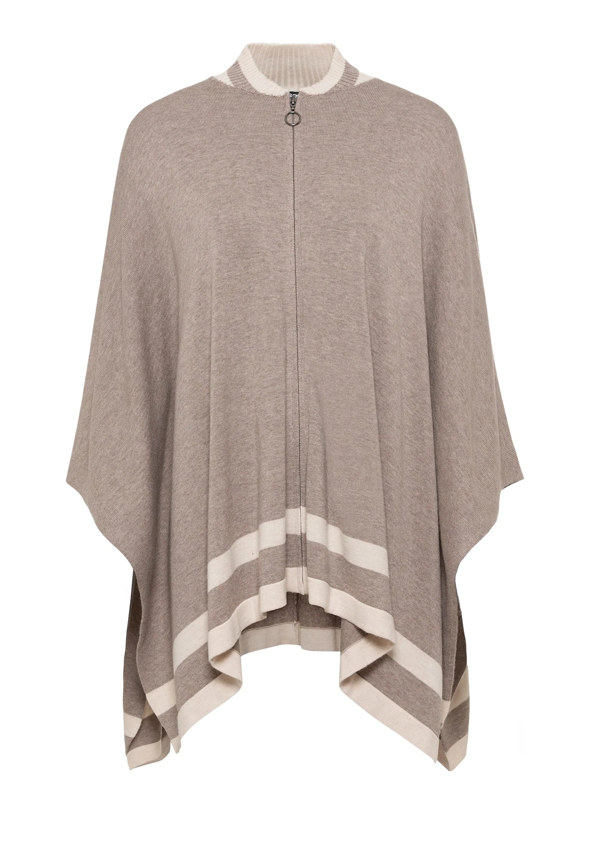На сайте указаны российские размеры. Классическое пончо с изюминкой: застежка-молния спереди и полосатая отделка на шее и по низу — это непринужденный стиль, который можно носить постоянно.