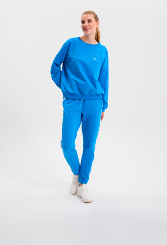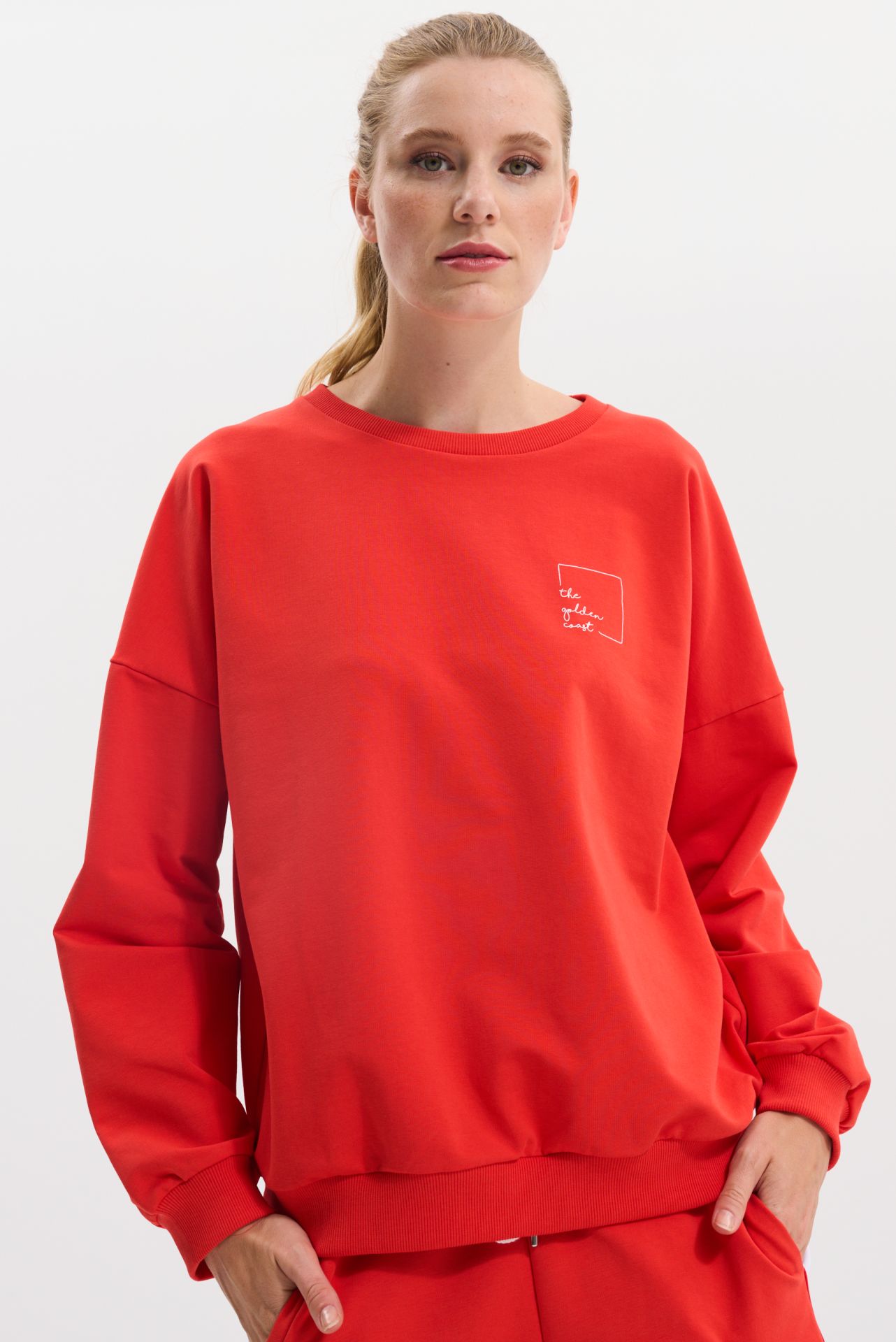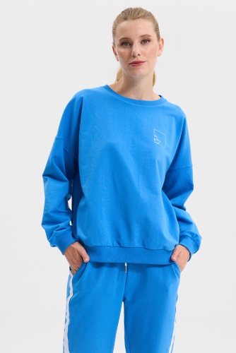 На сайте указаны российские размеры. Свободный джемпер с маленьким квадратным принтом "Золотой берег". Длинный рукав с манжетами.