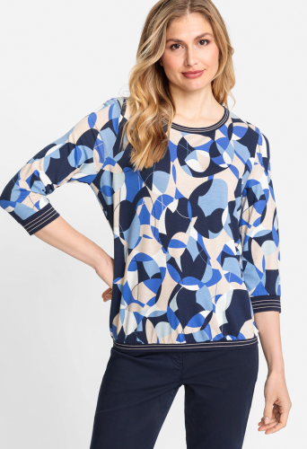 Этот эффектный джемпер украшает геометрический узор в ярких тонах, напоминающий о 70-х годах. Трикотажная отделка в тонкую полоску завершает вырез, манжеты и подол. Свободный и непринужденный крой Clara имеет окантовку по краю для дополнительного комфорта. Ткань имеет мягкую и приятную драпировку благодаря экологически чистым волокнам.
