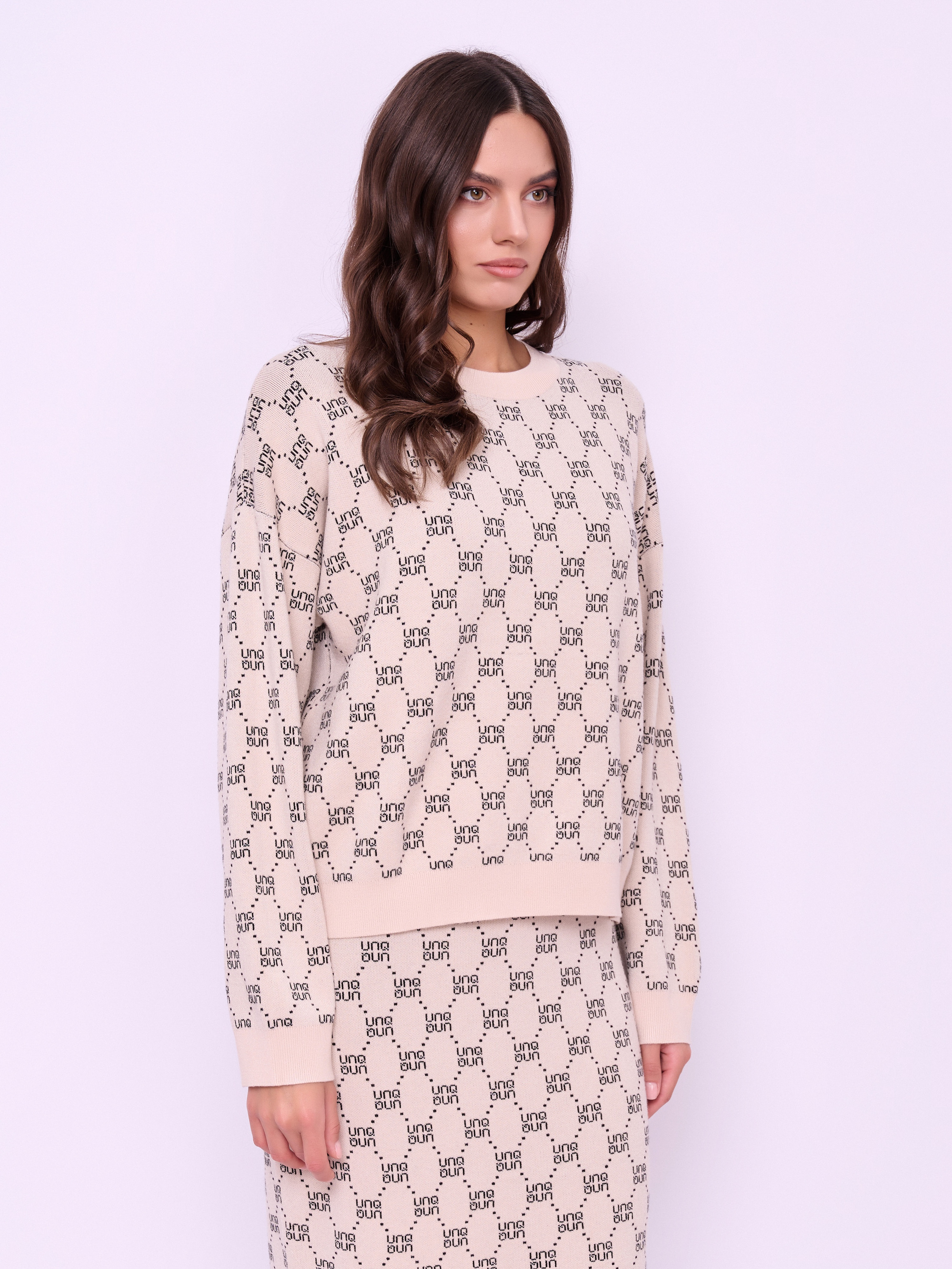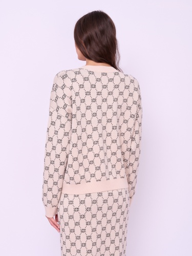 Детали: вырез горловины округлый, рукава длинные, покрой прямой, рисунок орнамент из надписей. Длина по спинке: 55 см.