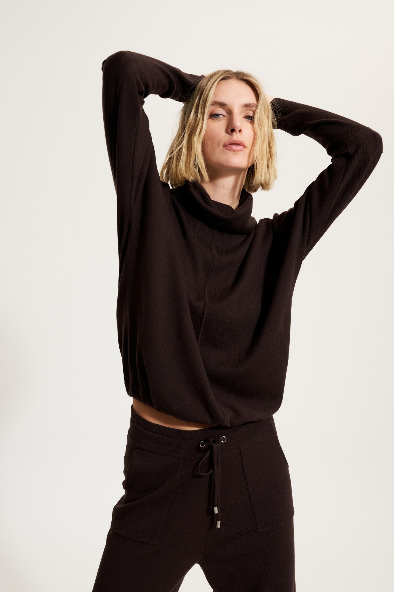 Джемпер свободного кроя с двойным воротником. Длина: 62 см.