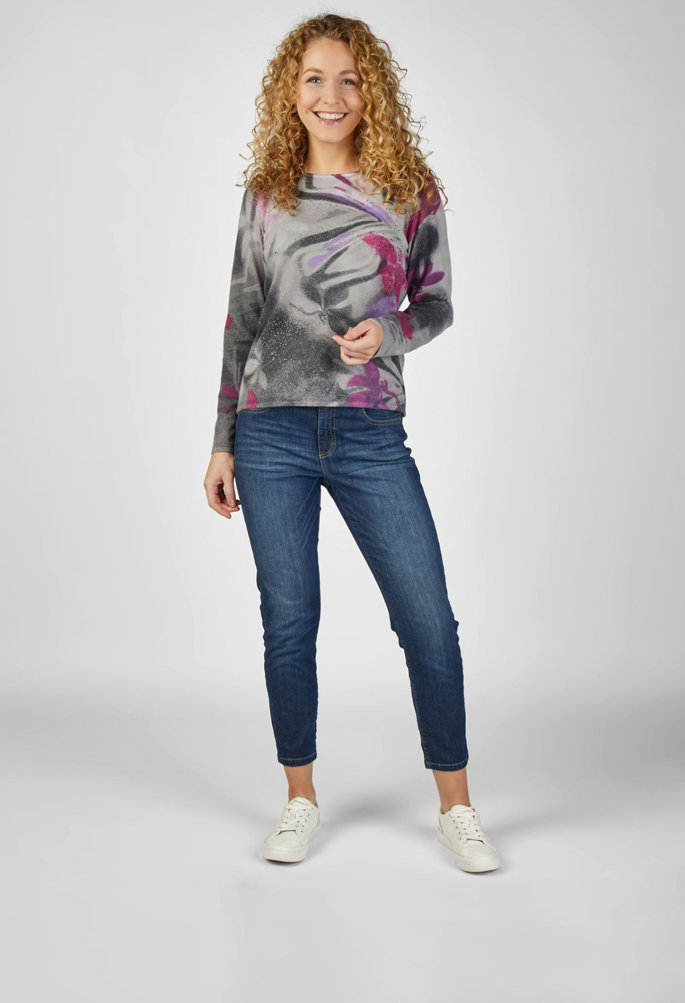 Стильный свитер сочетает в себе комфорт и элегантность. Высококачественный трикотаж согреет и создаст уют, а модный узор придаст вашему образу особую индивидуальность. Общая длина для размера 44: 62 см.