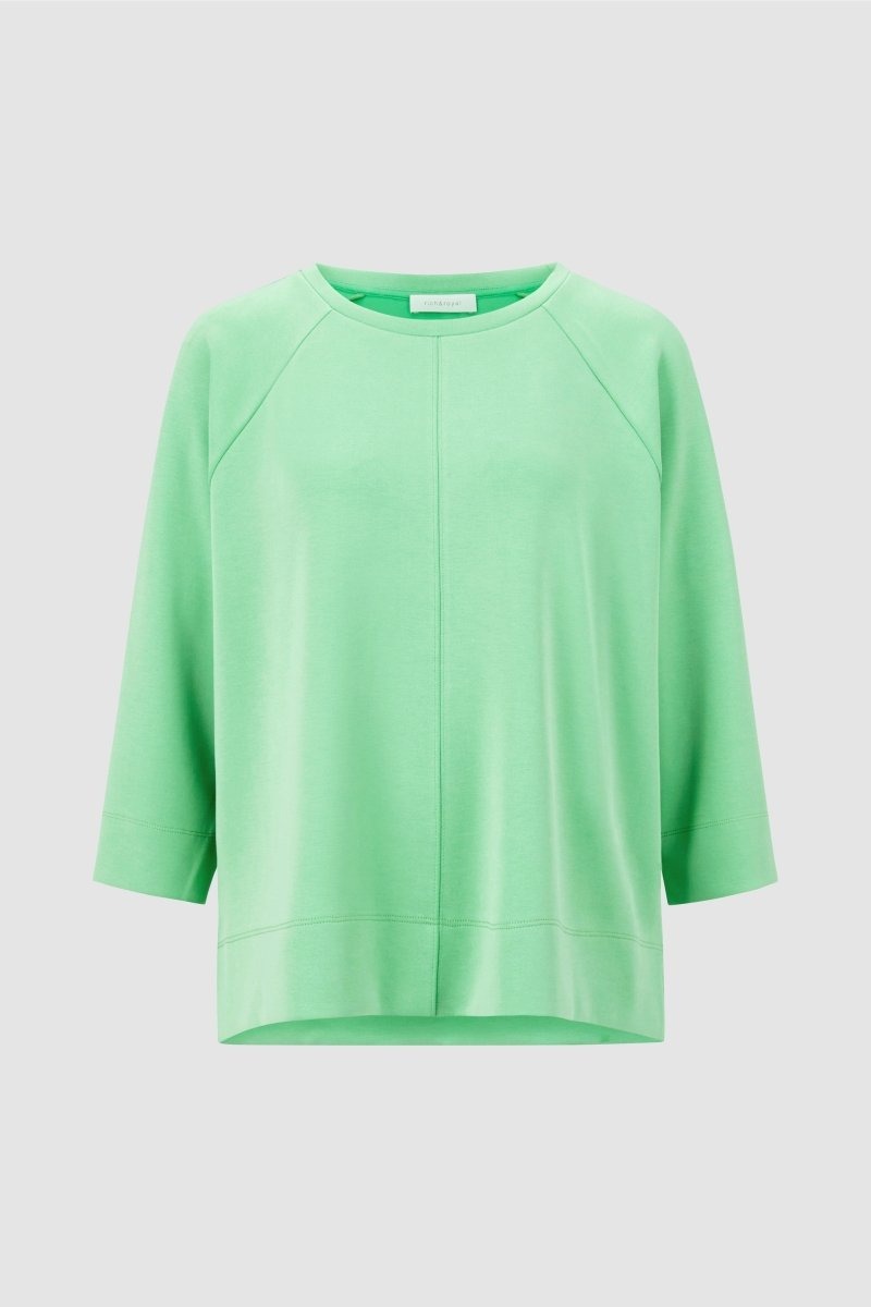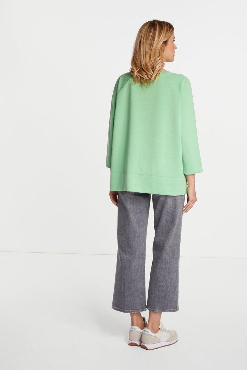Мягкая толстовка с круглым вырезом гарантирует, что вы сможете надеть ее и чувствовать себя хорошо. У него повседневный широкий крой и рукава длиной три четверти. Спина удлиненная. Длина для размера 42: 64 см. Окружность груди для размера 42: 128 см.
