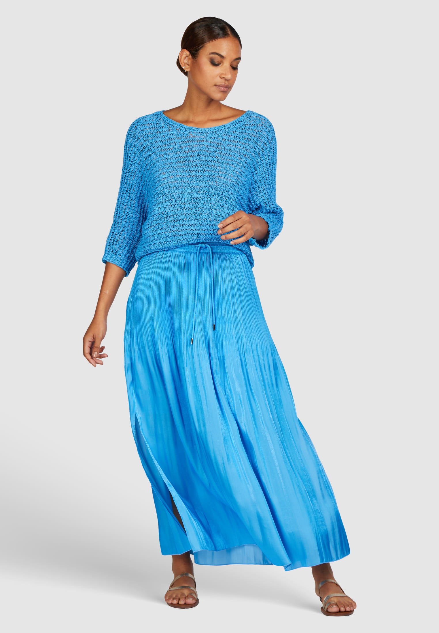 Свитер «крыло летучей мыши» изготовлен из высококачественной пряжи букле, очень мягкой на ощупь. Он сделан из хлопка от Better Cotton Initiative. Вырез «лодочка» и повседневная ширина так же впечатляют, как и модный горизонтальный вязаный узор