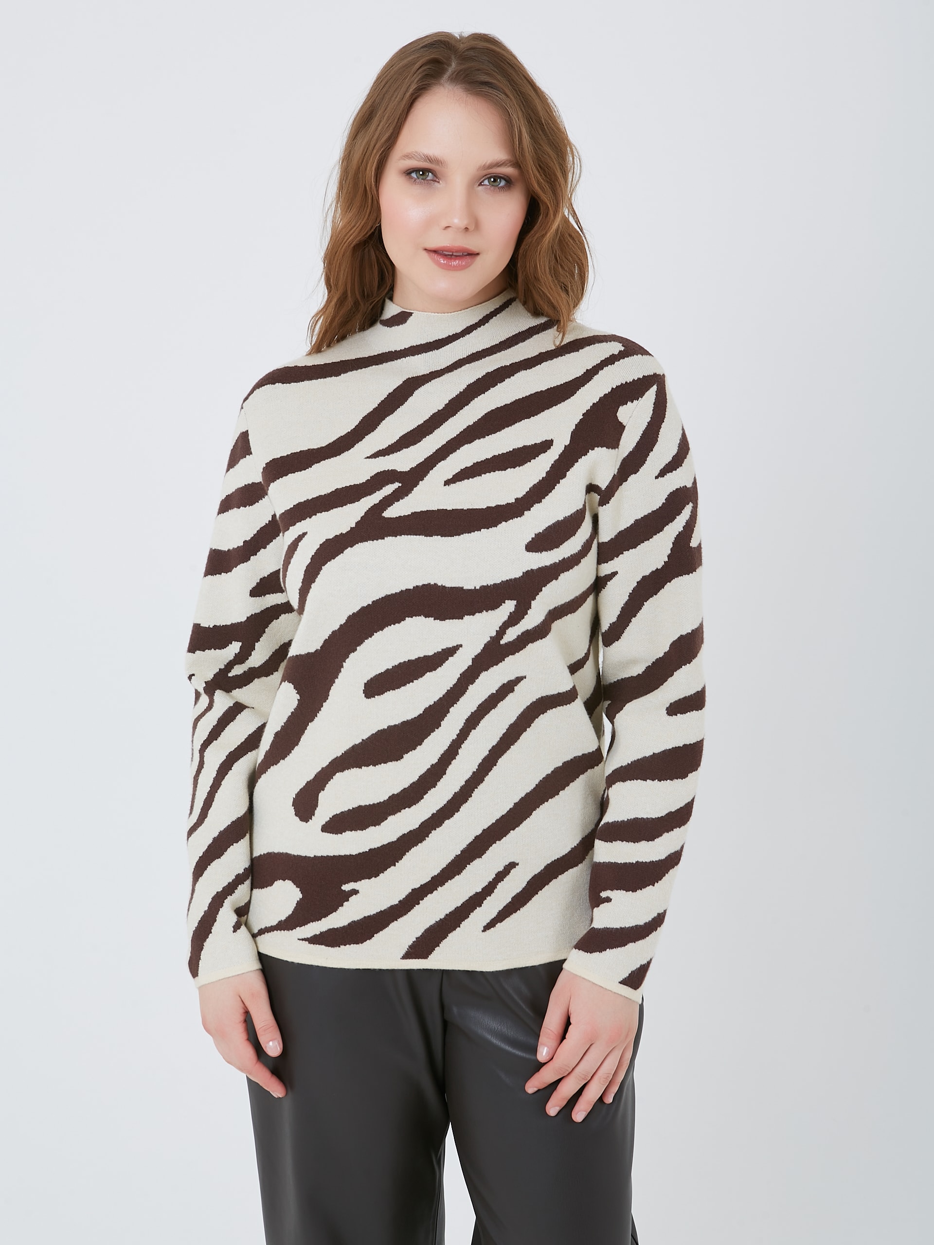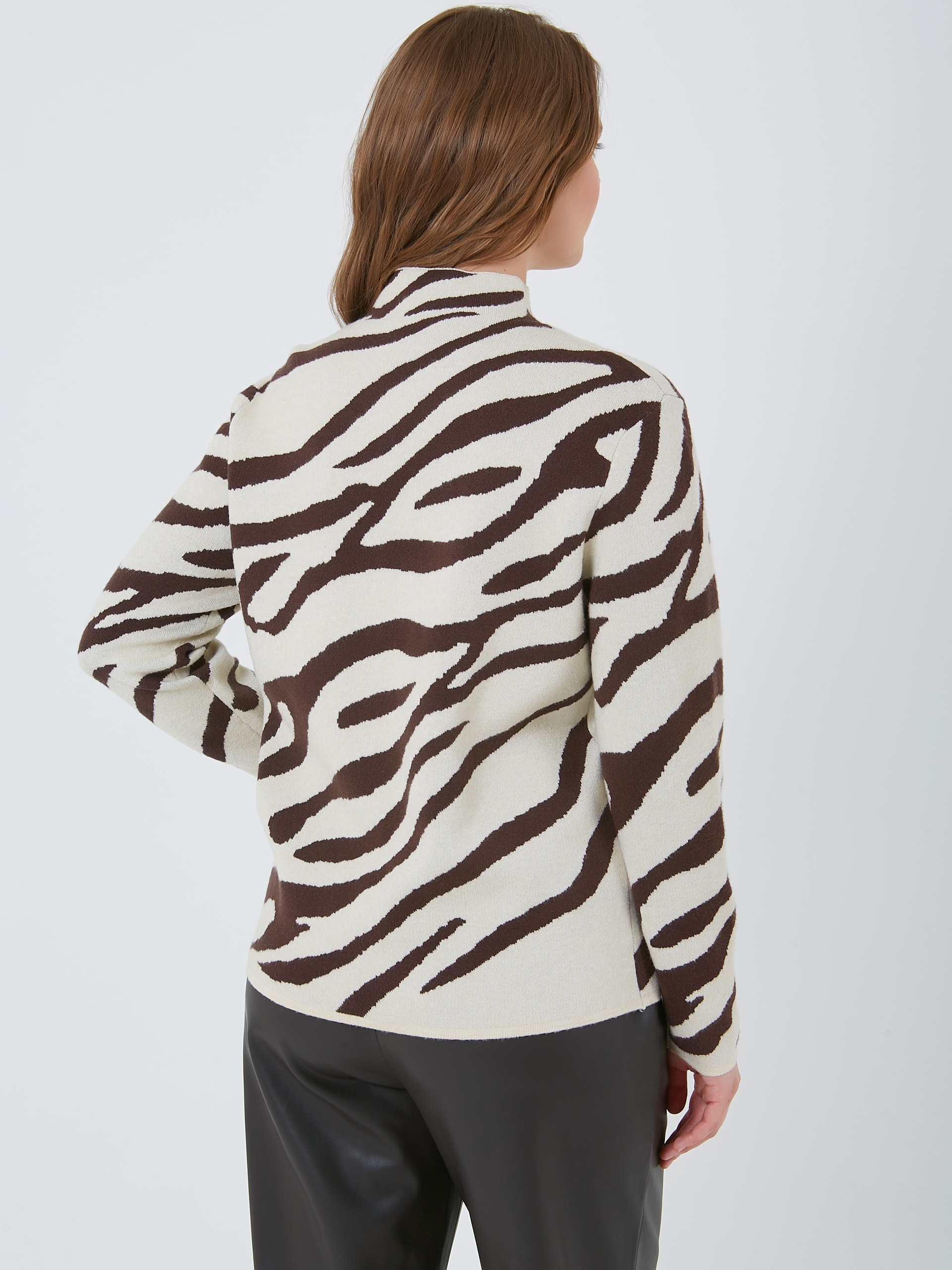 Уютный мягкий трикотажный джемпер с коричневым диагональным зебровым принтом. Осень-Зима'25/26. Капсула "Хозяйка медной горы"