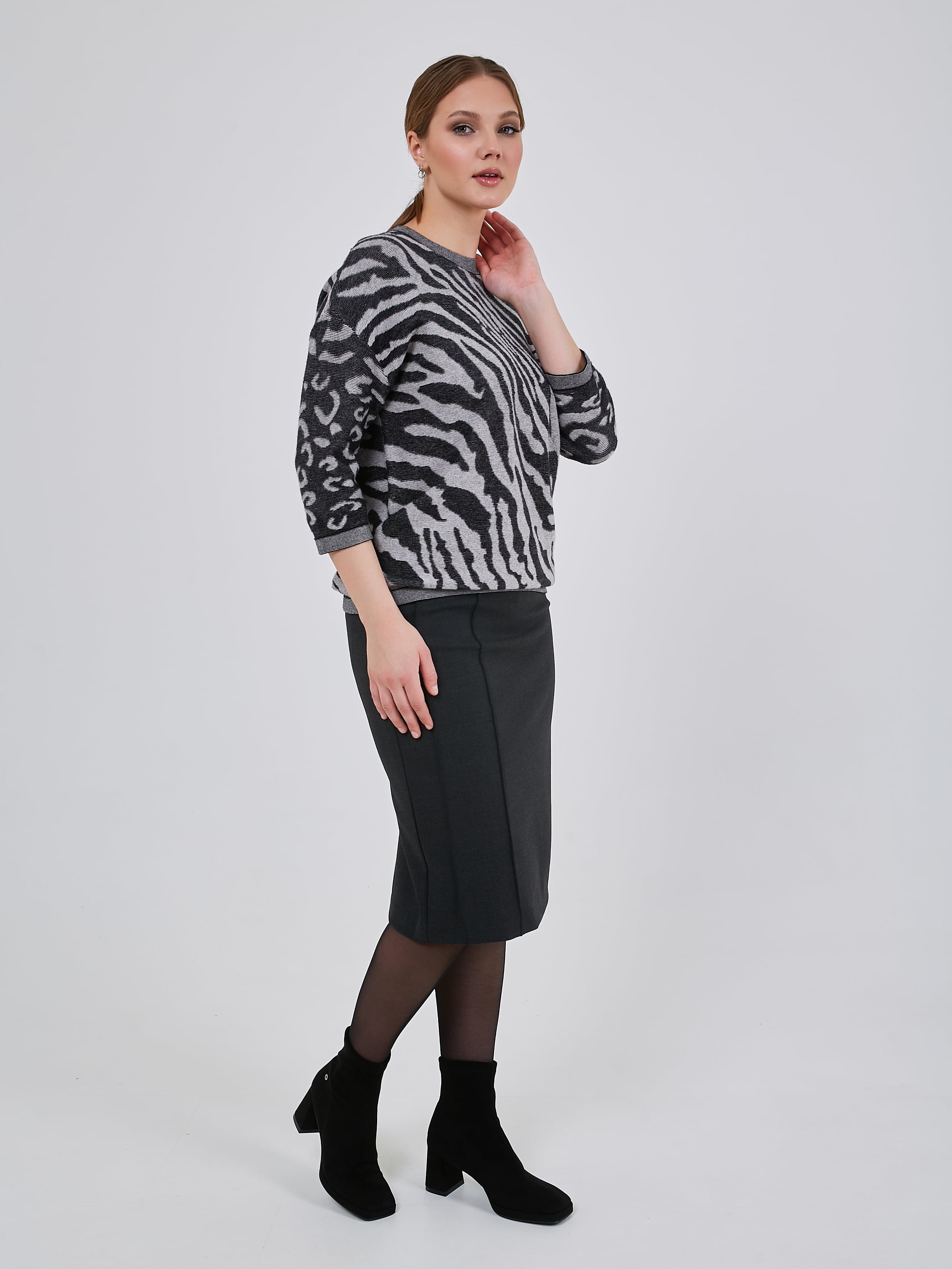 Анималистичный джемпер с длиной рукава 3/4, с небольшим декором в виде страз в цвет изделия. Коллекция Осень-Зима 2024. Капсула "Гостья из Будущего"