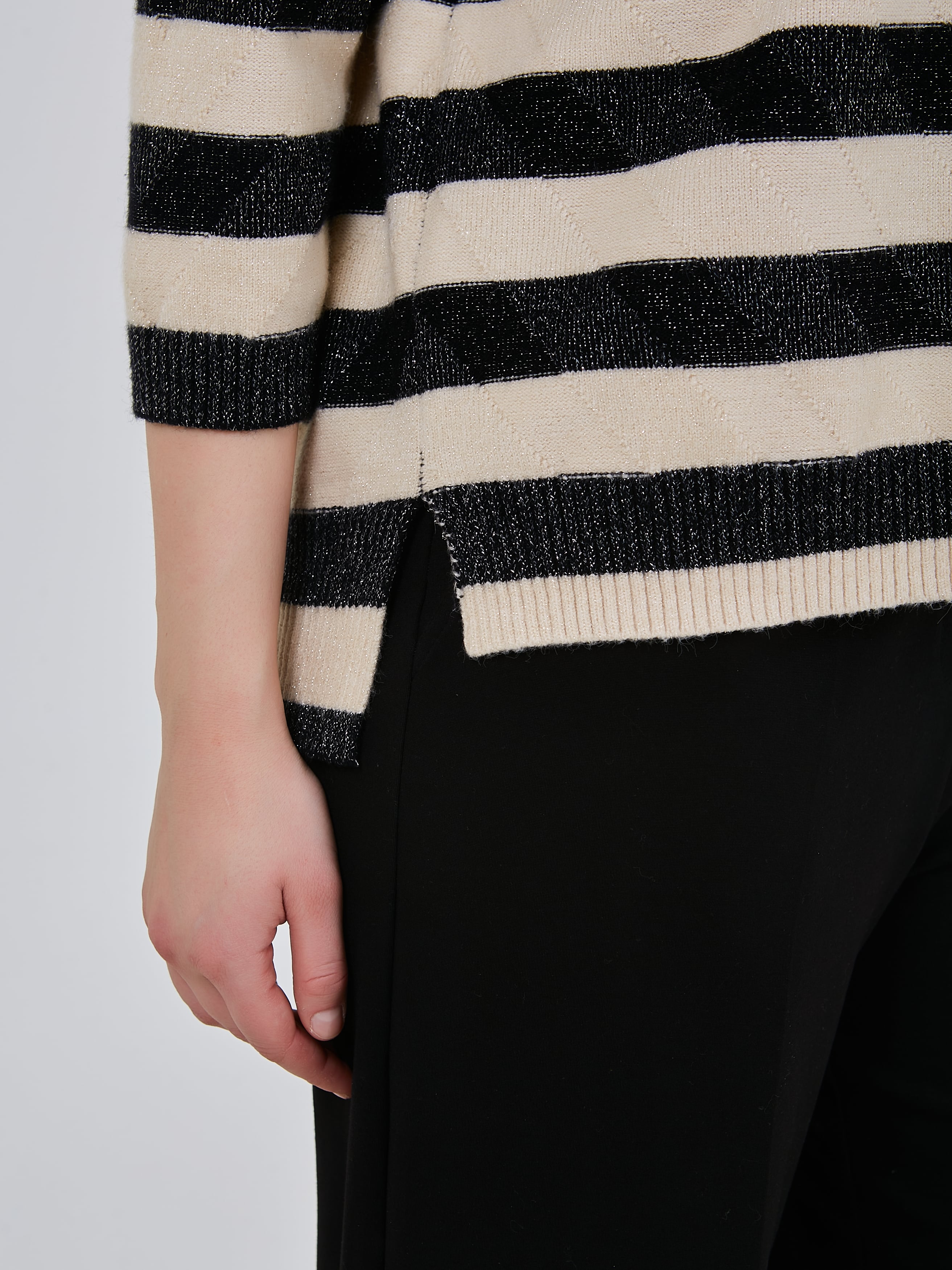 Джемпер с принтом в полоску и люрексным декором в виде диагональных полосок, зрительно вытягивающий силуэт. Длина рукава 3/4. Коллекция Осень-Зима 2024 Капсула "Унесённые ветром"