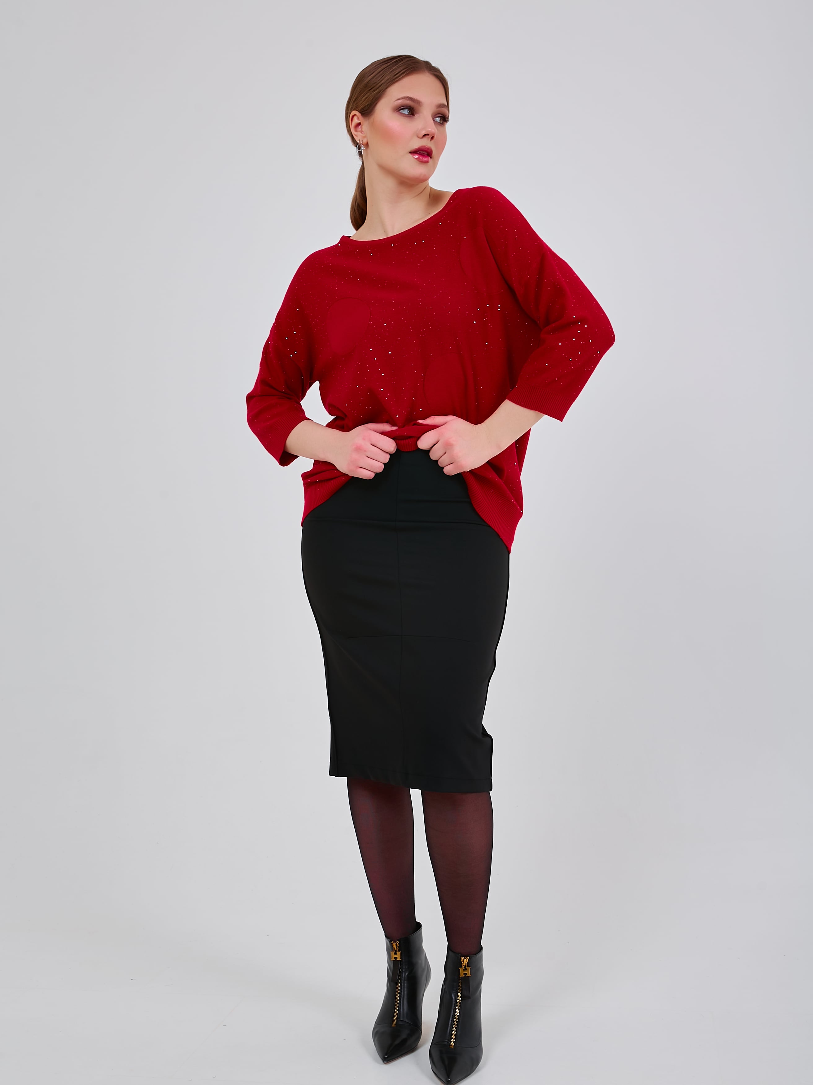 Базовый джемпер трендового оттенка красного, деликатно украшенный микропаетками.Осень-Зима'25/26. Капсула "Алые Паруса"
