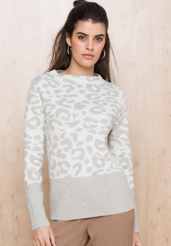 Трикотаж может быть изысканным, и этот джемпер - тому доказательство! Покрой по фигуре, вырез горловины "воронка", втачные рукава полной длины. Анималистический рисунок подчеркнут деликатным блеском нити люрекса. Приятный к телу смесовый материал с хлопком, вискозой и шерстью обеспечивает комфорт.