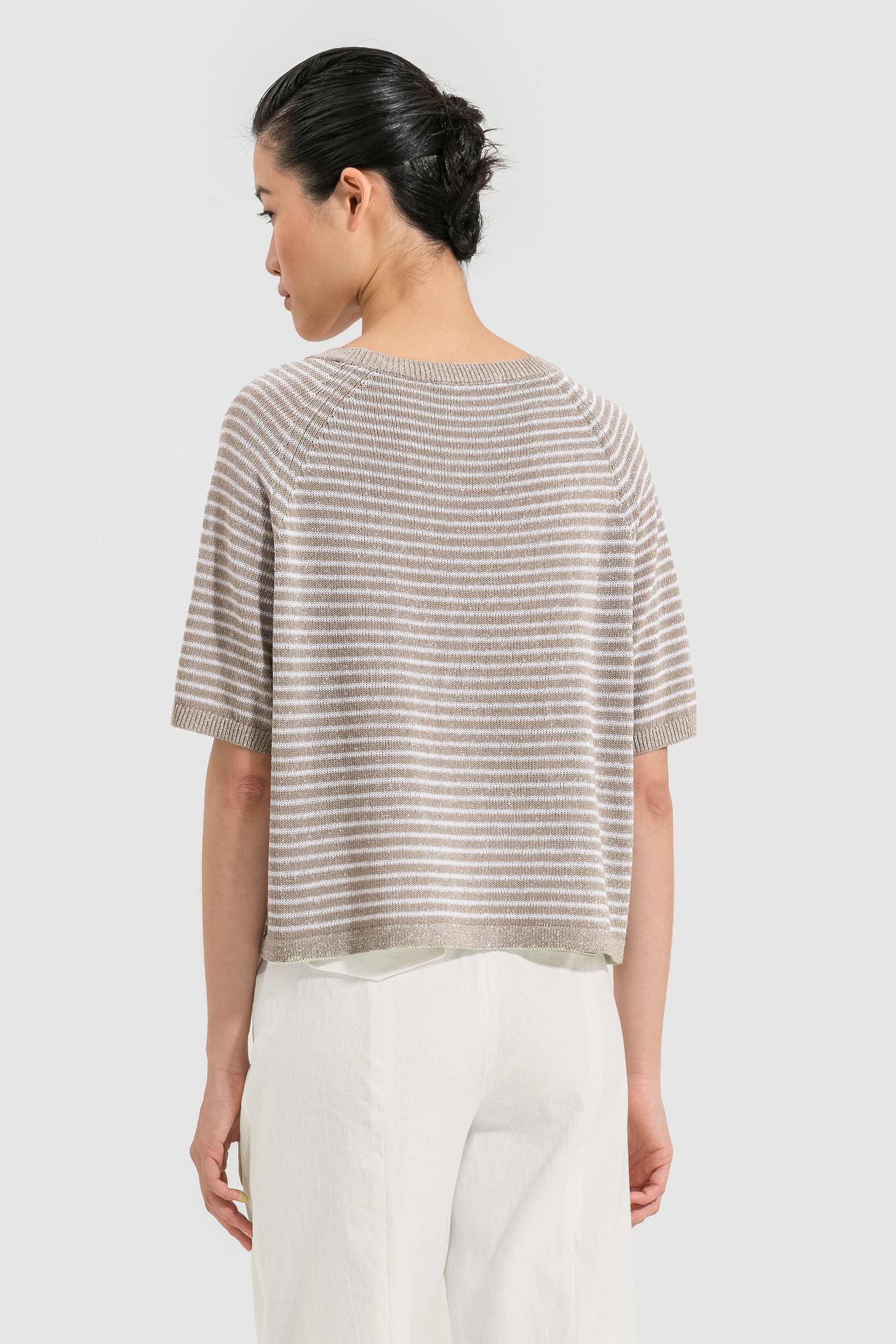 Hемецкий бренд. На сайте указаны Российские размеры. Полосатый джемпер из струящегося смесового хлопка с эффектными бликами из блестящей пряжи. Заниженная линия плеча и рукава реглан дополняют повседневный свободный стиль.