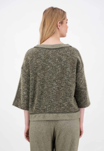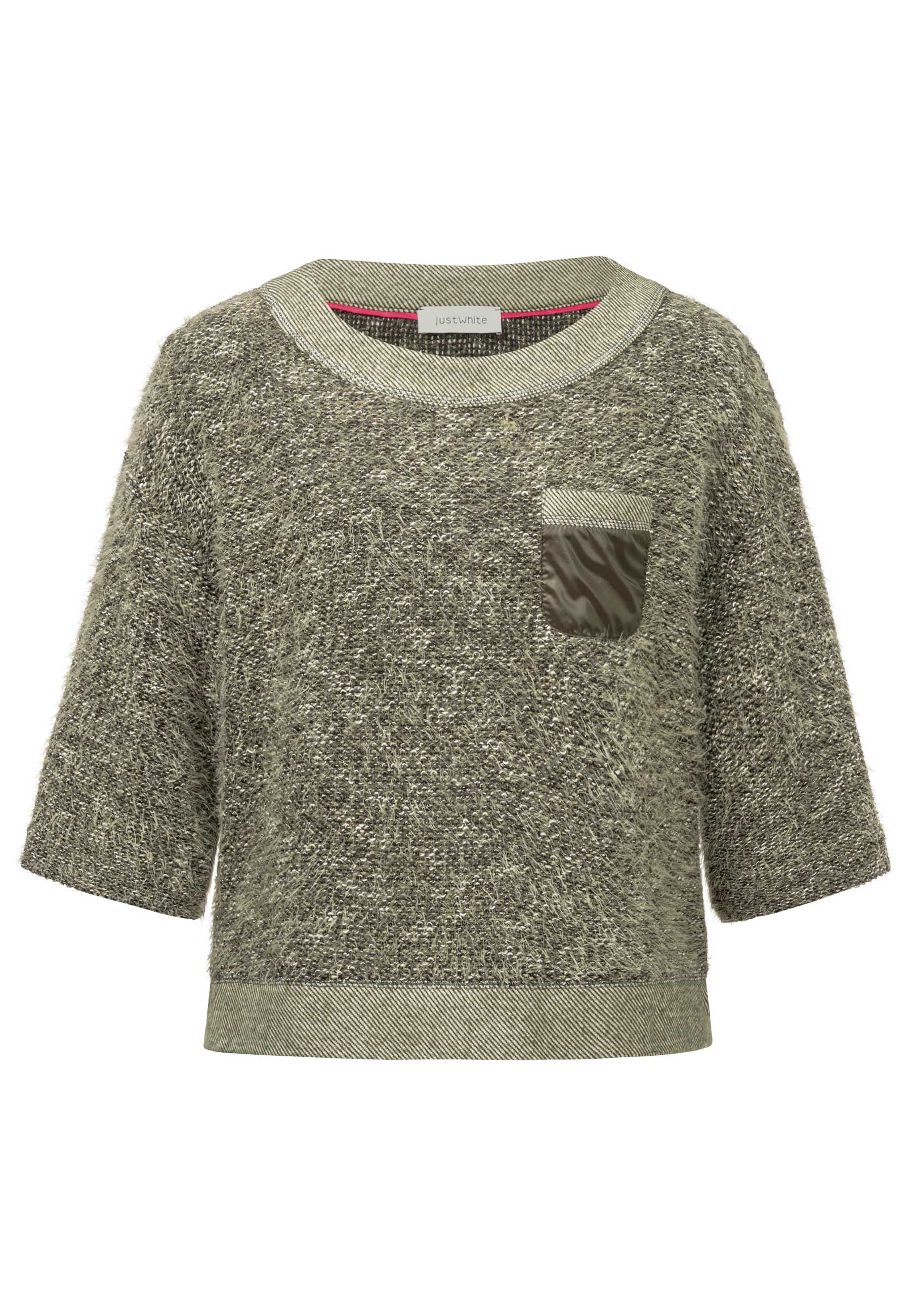 На сайте указаны российские размеры. Трикотажный свитер вне времени — стильная изюминка благодаря своим разнообразным свойствам: приятный мягкий трикотаж сочетается с широким разрезом по низу и небольшим нагрудным карманом тон в тон с тонкими швами из люрекса. В сочетании с базовым топом или белой блузкой образ можно носить совершенно естественно или особенно современно. Смесь материалов из полиакрила, хлопка, вискозы и эластана обеспечивает удобную посадку, мягкое сцепление и необходимую эластичность. Наша модель ростом 177 см. Измерения для 44 размера: Окружность груди: 115 см Талия: 115 см Бедра: 115см Длина спинки: 55 см Длина рукава: 32 см