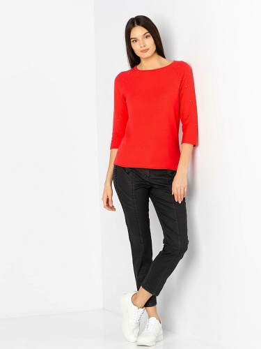 • слегка приталенный силуэт • круглый вырез • рукав 2/3, реглан • декор: стразы • практичный и приятный к телу материал из смеси хлопка и полиакрила