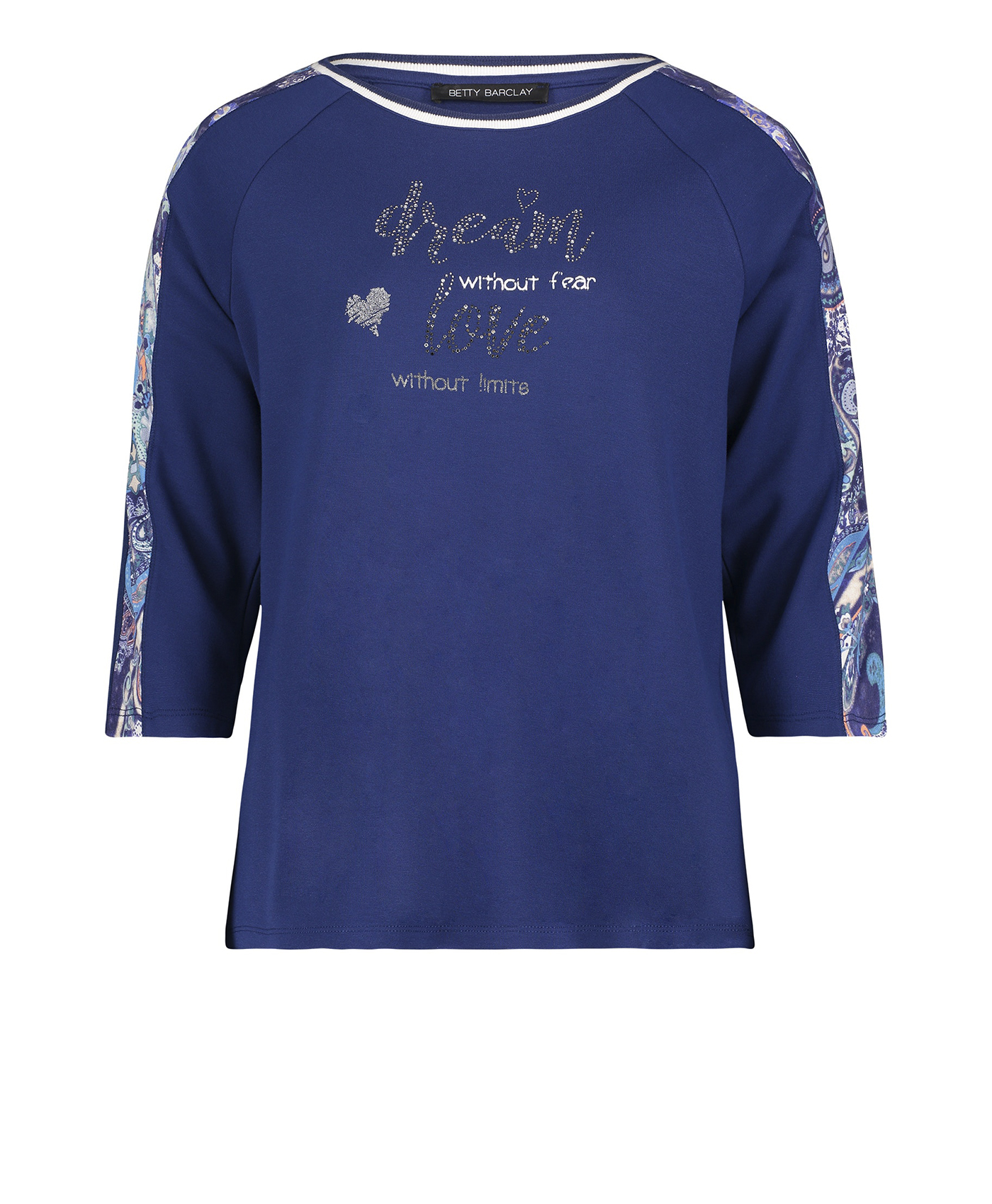 Джемпер прямого покроя создает непринужденный вид. Вырез горловины "лодочка", рукава реглан 3/4. Материал из вискозной смеси обеспечивает комфорт. Детали джемпера - надпись на груди, вставки принтованной ткани на рукавах и контрастная обтачка горловины - обращают на себя внимание и гарантируют стильный облик с любым комплектом одежды.