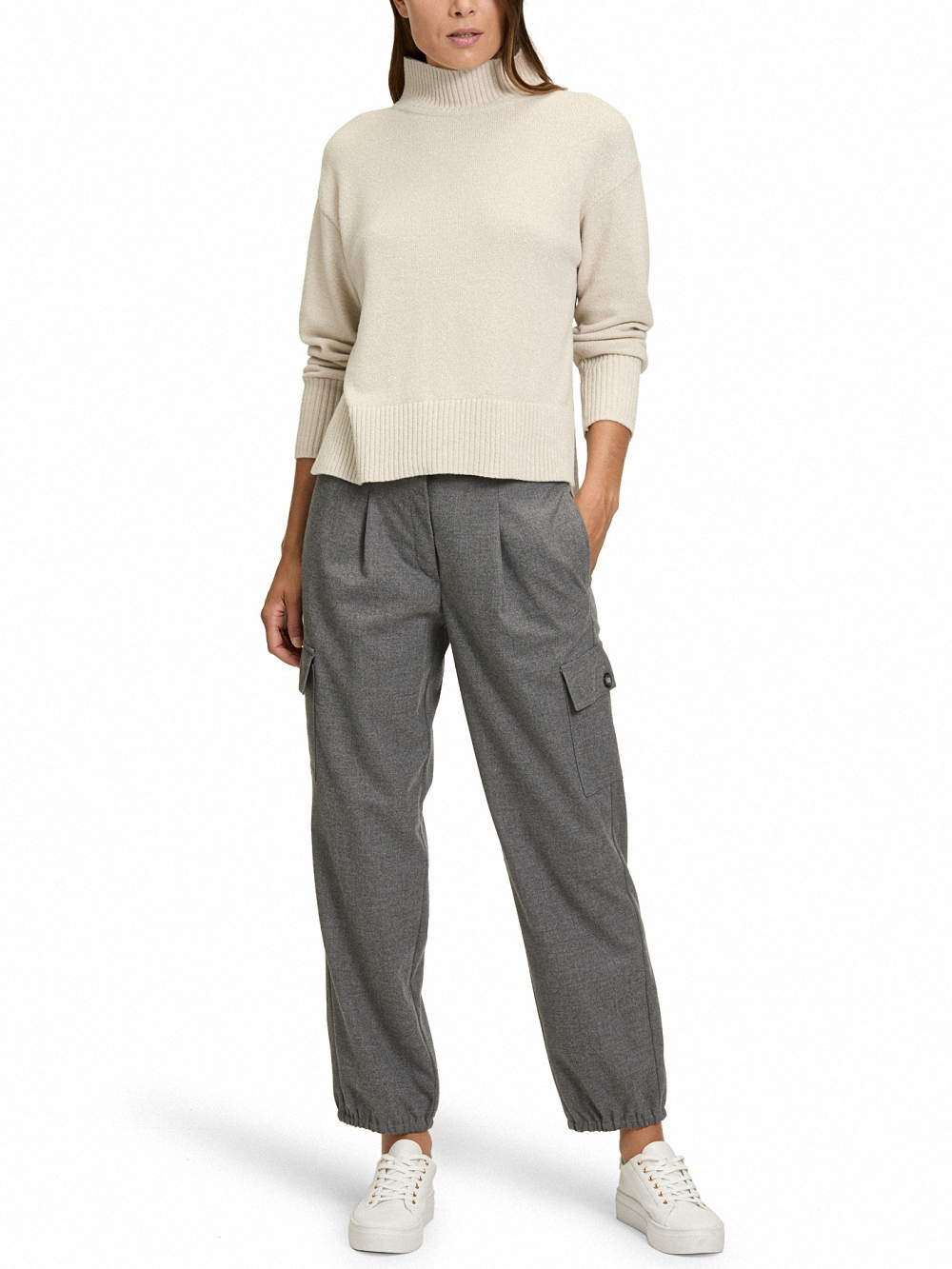 Классический свитер молочного цвета с высоким горлом и выточками по бокам. Подойдет как к классическому так и к свободному стилю