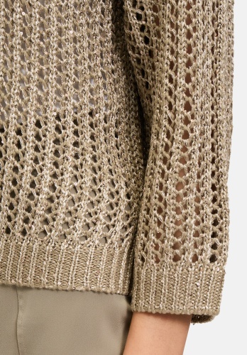 Этот ажурный свитер добавит элегантности вашему образу благодаря блестящим акцентам и непринужденному, простому крою. V-образный вырез и свободный крой создают современный, непринужденный образ, а укороченные рукава 3/4 обеспечивают дополнительный комфорт и непринужденный вид. Идеально подходит для модных повседневных образов с ноткой гламура!
